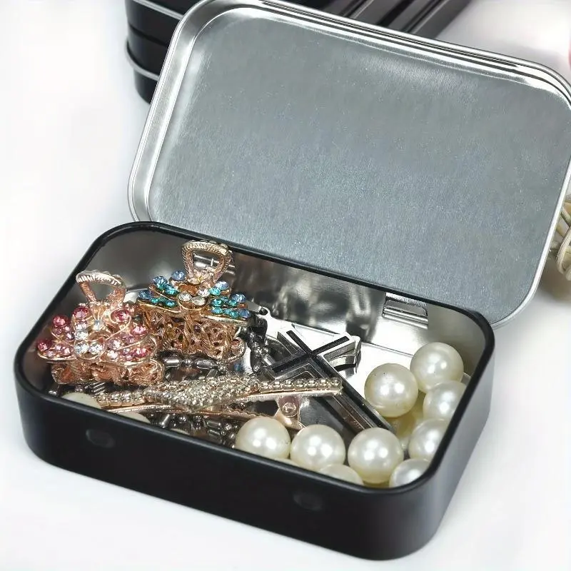 12pcs Metal Rectangular Storage Tin Box, Mini Portable Empty Hinged Tin, Small Storage Container & Home Organizer, For Storage Drawing Pin Candies Jewelry Crafts, Home Organizer, Durable Metal Box