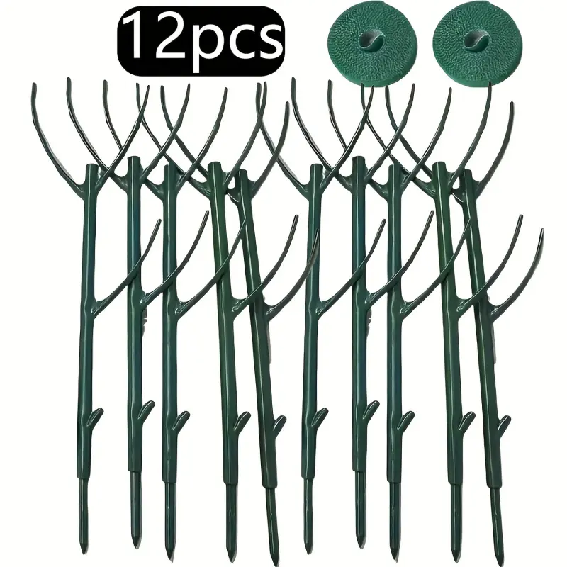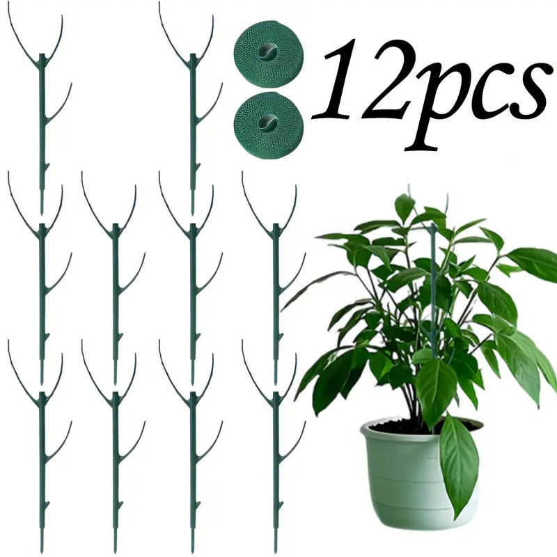 12pcs Stackable Plastic Plant Support Rings & Straps - Adjustable Fence Cages for Climbing Plants, Indoor/Outdoor Potted Plants - Durable Green Plant Stakes for Healthy Growth & Organization, Climbing Plant Stakes, Garden Arch Trellis