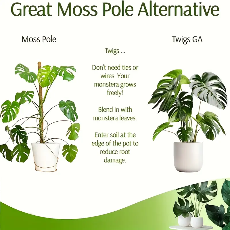Twigs Garden Accessories - Stackable Plant Support Stakes for Indoor & Outdoor Plants - Monstera Green, 17", Stackable Twig