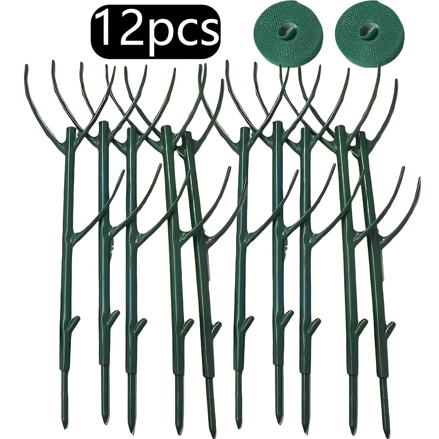 12pcs Stackable Plastic Plant Support Rings & Straps - Adjustable Fence Cages for Climbing Plants, Moss, Indoor/Outdoor Potted Plants - Durable Green Plant Stakes for Healthy Growth & Organization, Plant Stakes for Outdoor Plants, Climbing Plant Stakes, S