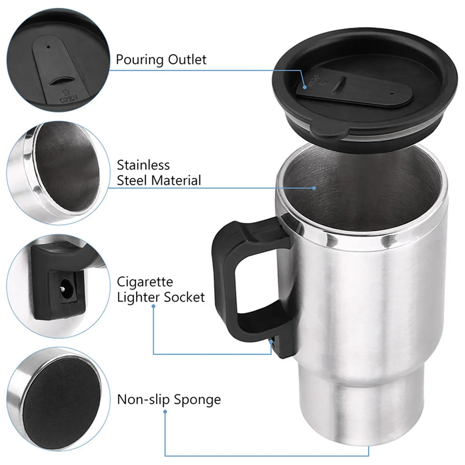 ·Power Source: 12V cigarette lighter plug, ideal for drinking hot water on the road.