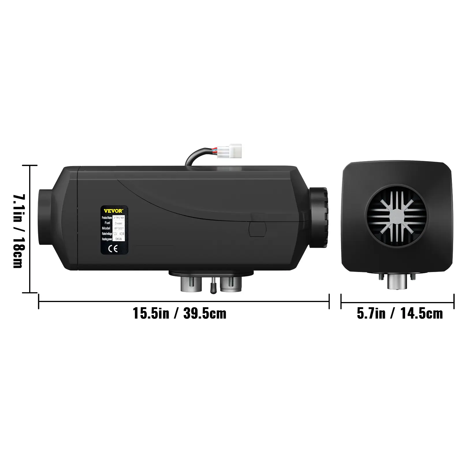 • Efficient Diesel Heater: Heater Power: 5KW; Rated Voltage: 12V; Heater Working Temp: -40℃~+20℃; Oil Pump Working Temp: -40℃~+20℃. On cold winter days, we have got you covered with this diesel air heater to warm your car and eliminate the windows' frost. With fast heating and low noise, the aluminum heater runs smoothly in any harsh environment.