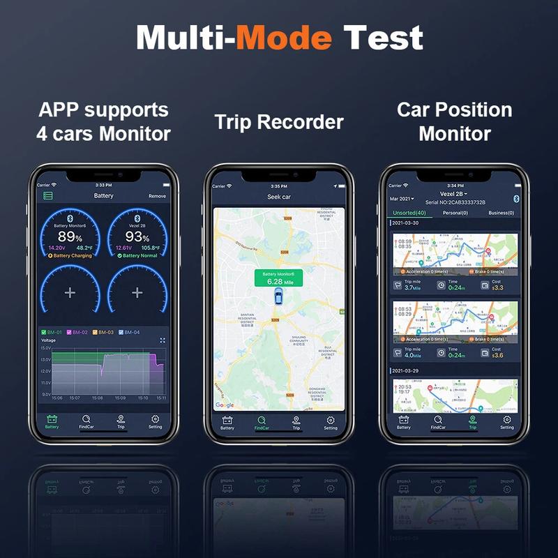 Compatible with all 12V vehicle batteries and installed in the car battery Real-time monitoring via mobile phone app.