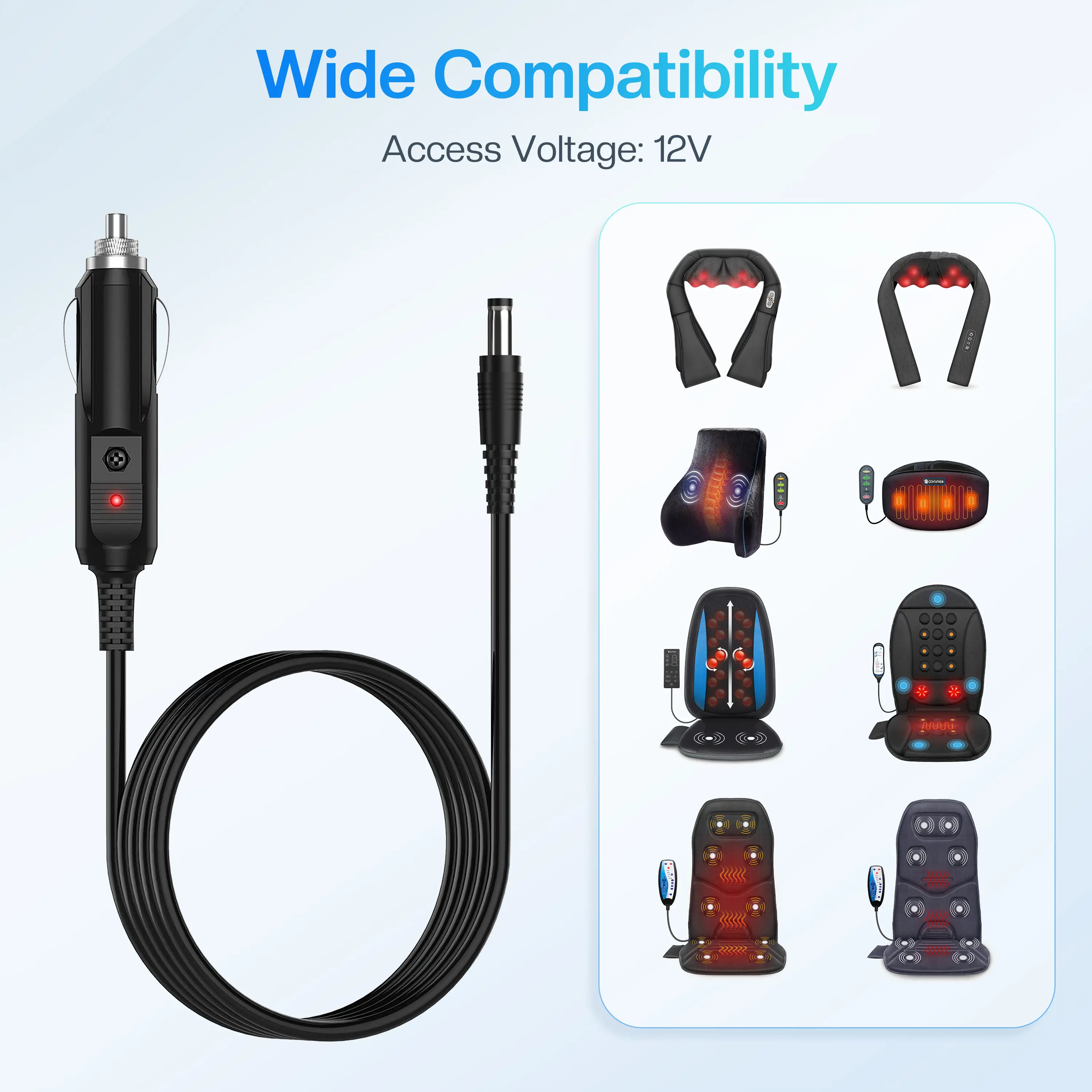 Compatibility: The Comfier 12V car charger adapter works with a wide range of devices, including all Comfier neck and back massage cushions (models: CF-6006N, CF-6302-M, CF-2206-M, CF-2206N, CF-2206G, CF-1503N, CF-2003-WG-B, CF-2606MC, CF-6101), making it a versatile accessory for any vehicle.