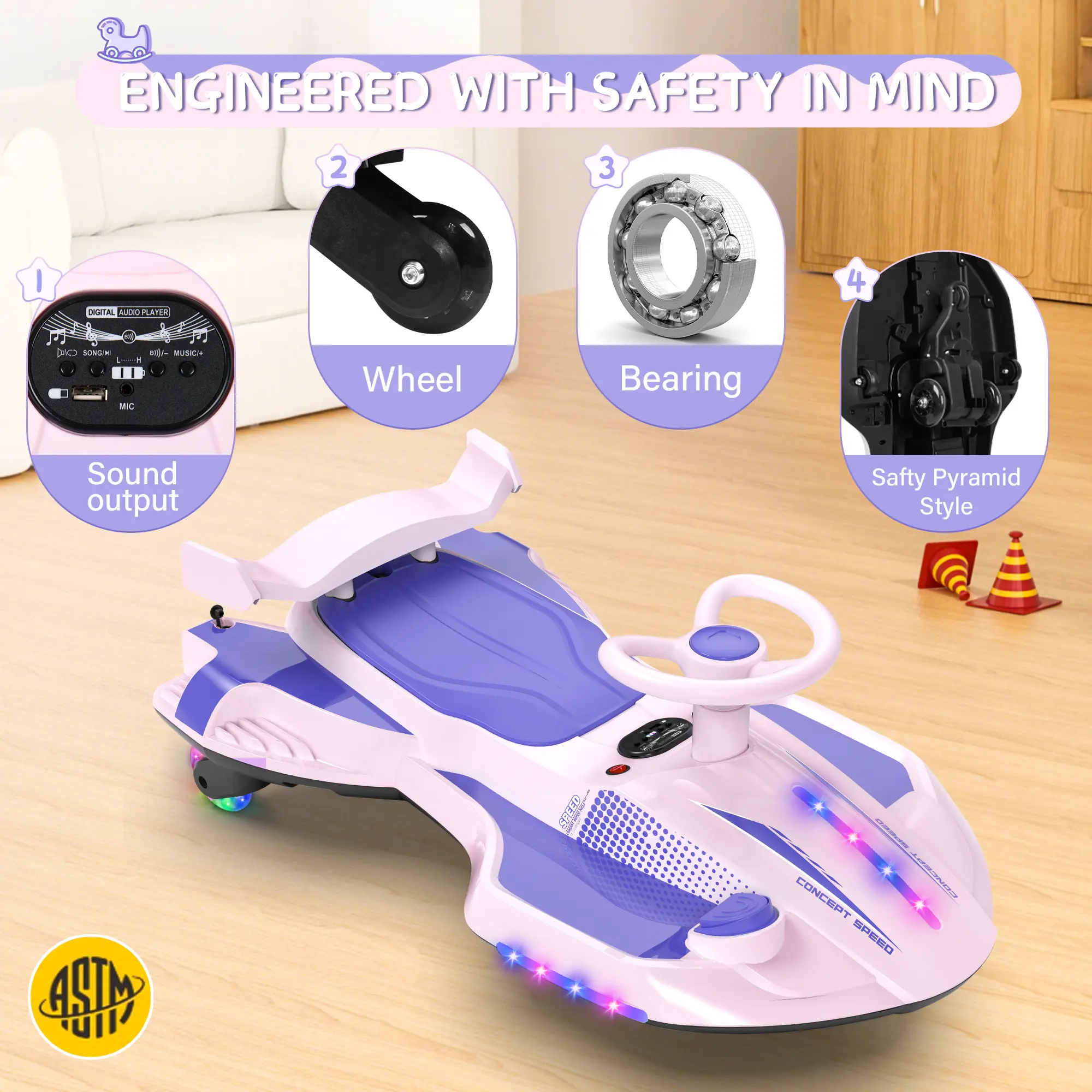 Ā·ćLED FLASHING WHEELSćThe mute PU wheel is safe to ride indoors and will not damage the wood floor. The drifting car for kids can also be easily used in a variety of road conditions. With the cool lighting design, kids can slide to light up and increase your baby's interest in play.