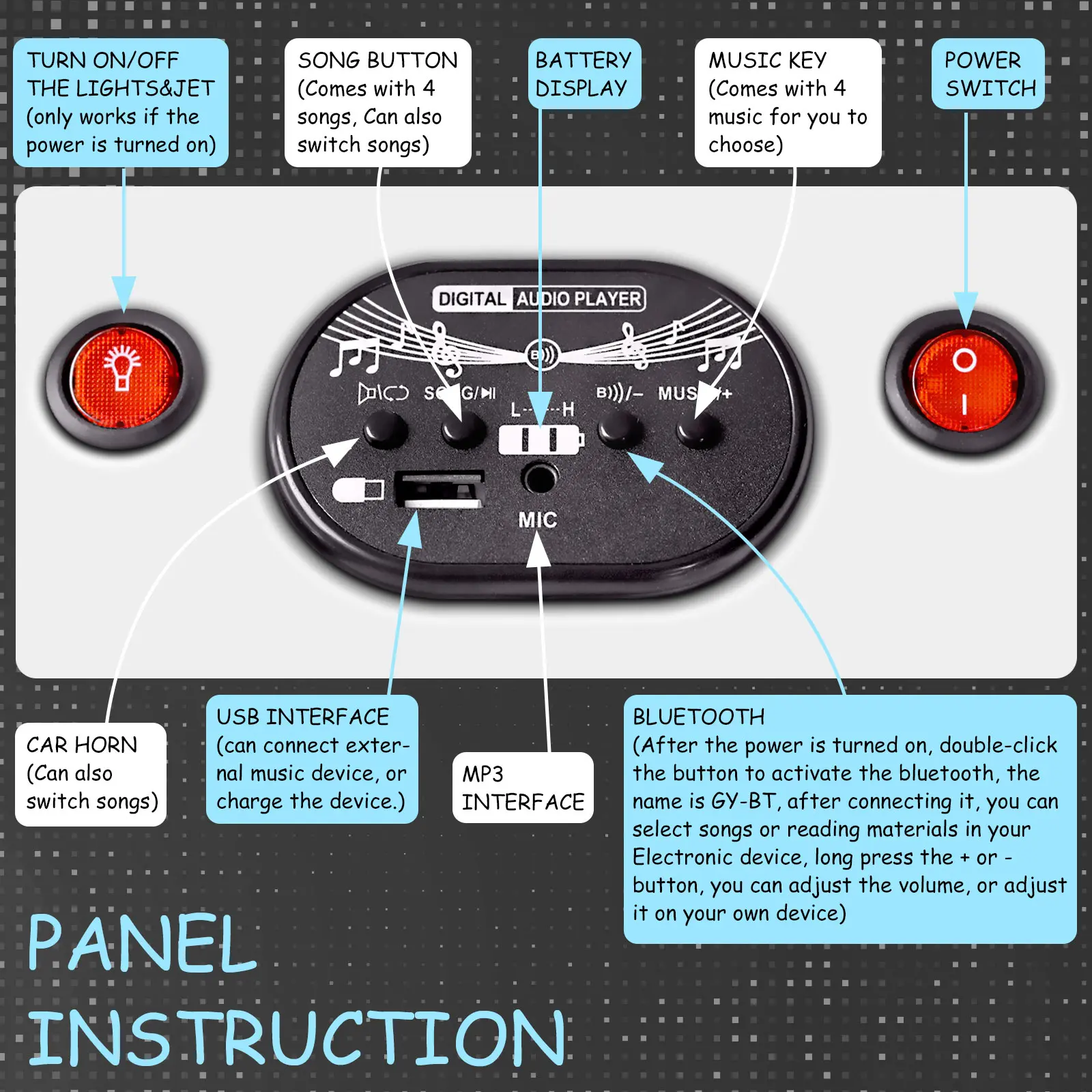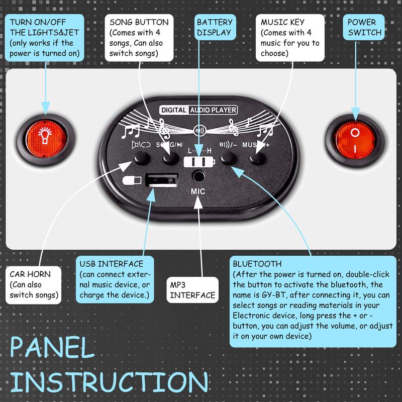 Ā·ćMULTIFUNCTIONAL BUTTONSćThis 12v electric kids car is equipped with music, light and multiple device ports (MP3/USB), kids can play their favorite stories to create an enjoyable riding atmosphere.