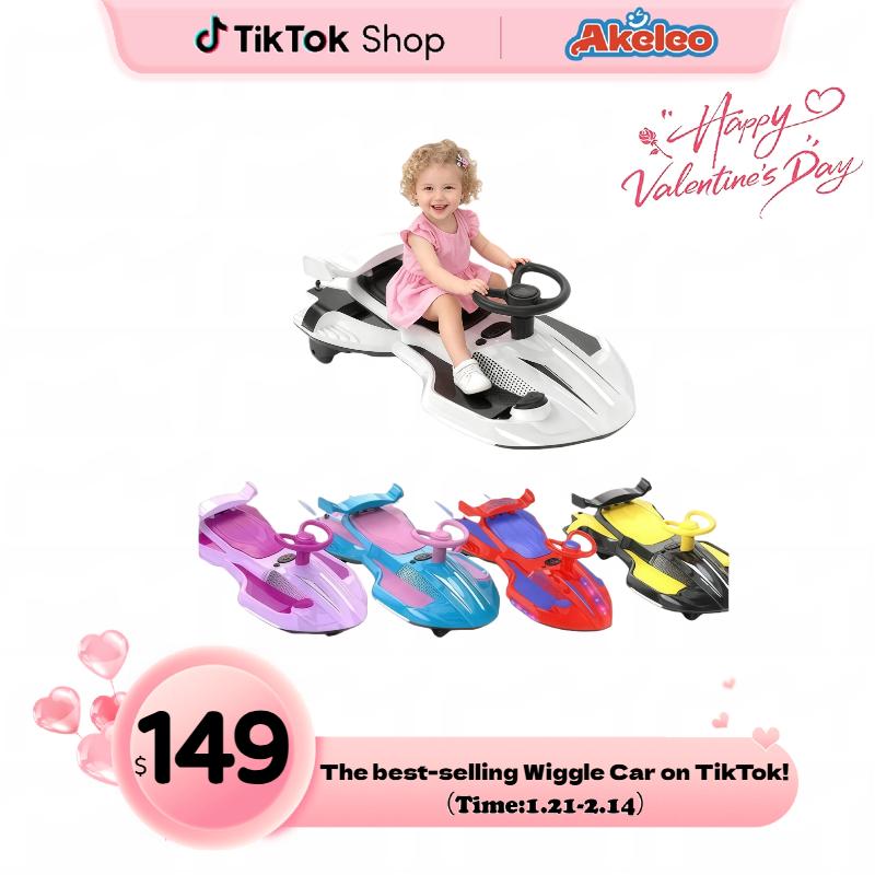 Ā·ć360°SMOOTH CONTROLćWith triangular stable structure and three front wheels, this wiggle car ride on toy can spin a full 360 degrees with simple steering wheel controls.The drifting Go-Kart can go forward and go in any directions easily as you like. Kids can keep balance when turning around and avoid rolling over and leaning.