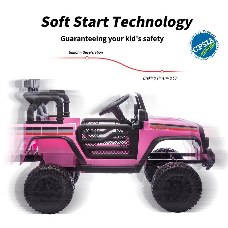 We received the truck on time. It came in a well-protected box, with all parts included, and even a set of tools to tighten the unit's bolts. It took us an hour to assemble. It has Bluetooth connectivity, a remote control, a 12V battery, and a charger. I love it, and will definitely buy again.