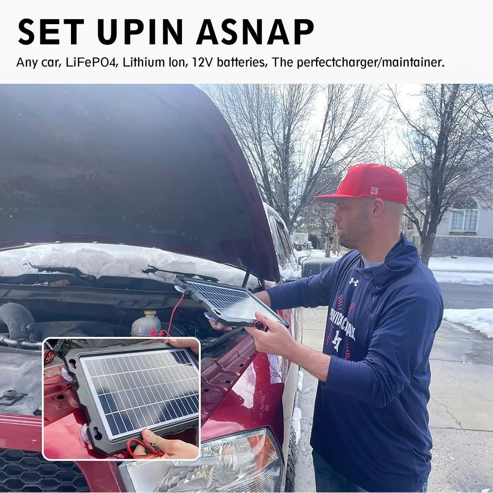 1,Solar charger maintainer and battery charger are for maintaining a 12-volt battery daily. You'd never have to worry about battery drain out anymore!