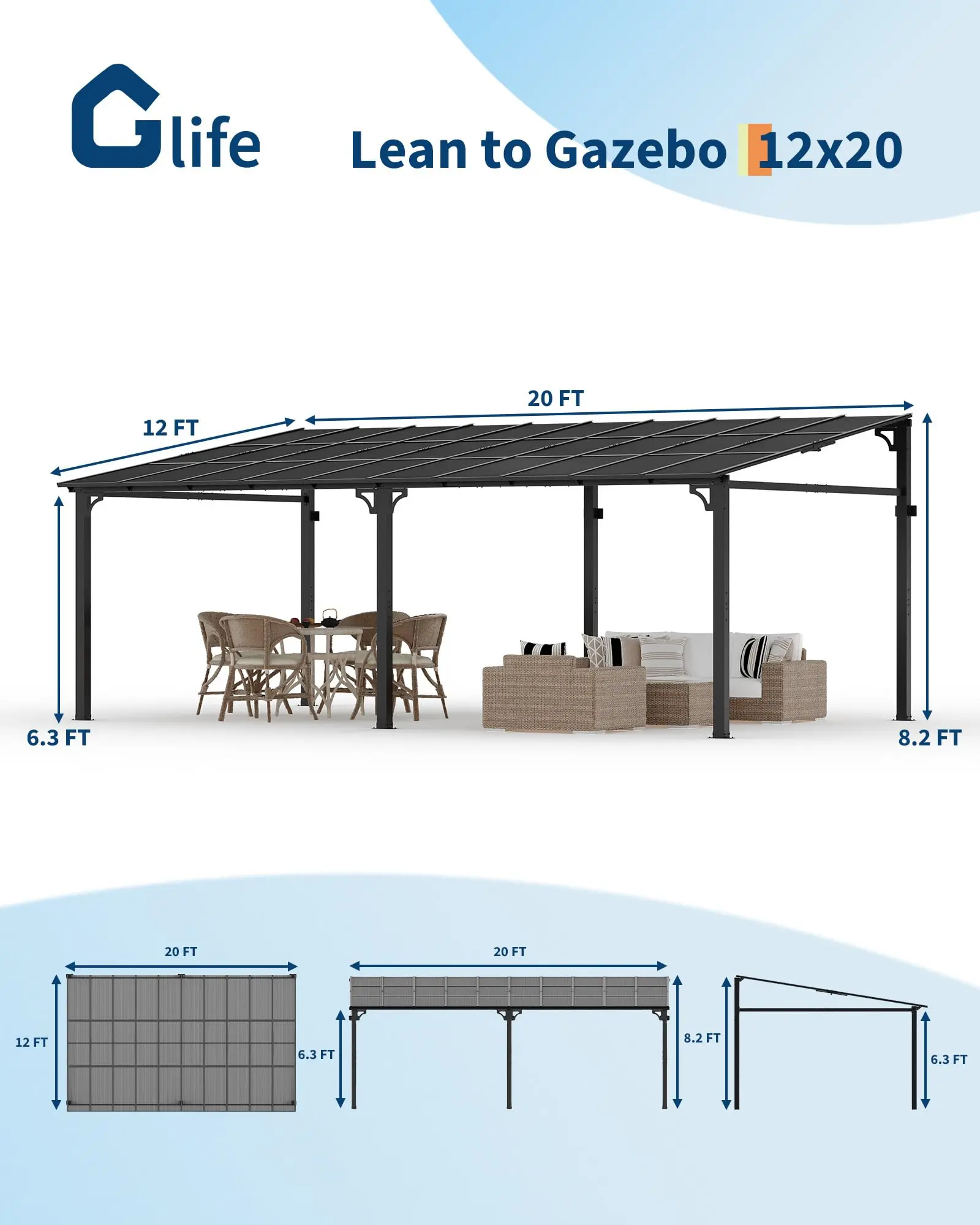 · SPACE-SAVING LEAN-TO DESIGN: Maximize every square foot with this wall-mounted gazebo’s compact lean-to structure. Its solid roof extends over your patio or deck without obstructing pathways—perfect for small yards or tight spaces. No need for freestanding posts, leaving 100% usable space underneath for furniture or gatherings.