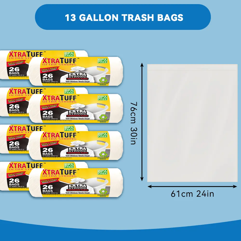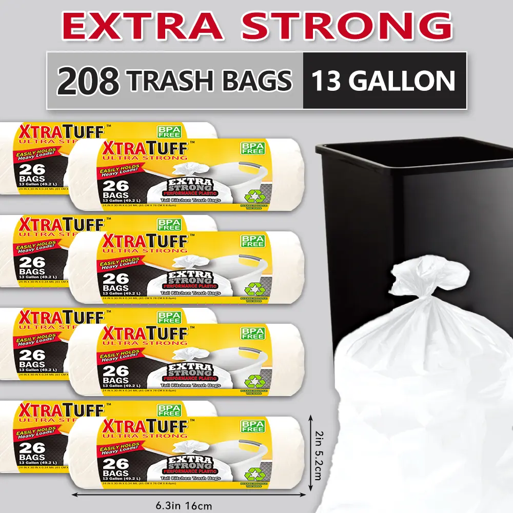 These super strong, leak-resistant, and odor-proof bags are perfect for various uses. Ideal for bedroom, kitchen, living room, outdoor, and toilet waste disposal. They offer a convenient and sanitary solution for waste management. Each bag holds up to 13 gallons, ensuring ample space for your trash needs.