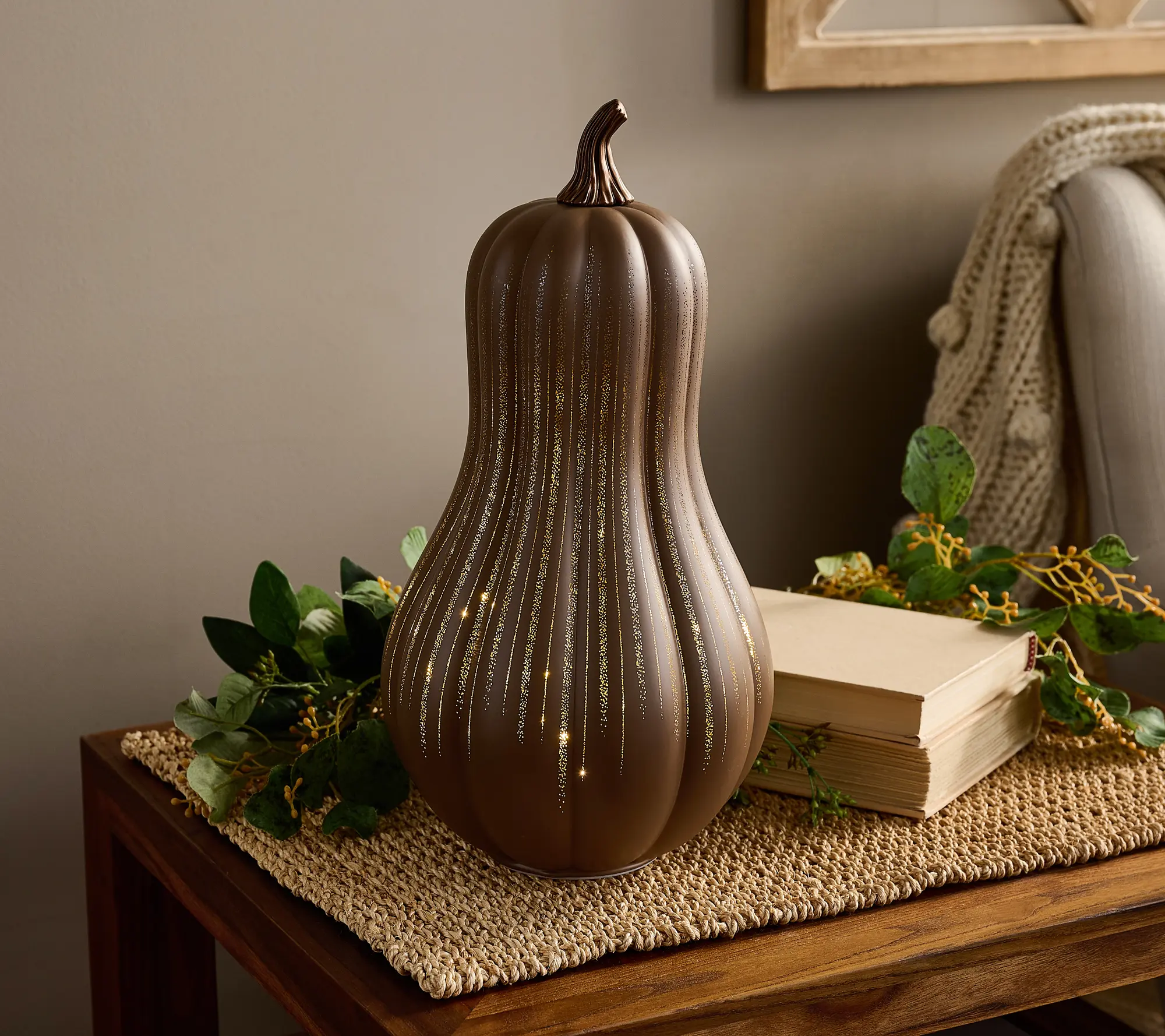 I love this lighted gourd. I got the color champagne. Hurry! These sell out fast. #gourd #valerieparrhill #qvc #autumndecor #falldecor