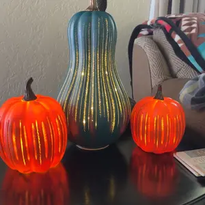 OMG..i was so skeptical but this pumpkin is beautiful!!!I was pleasantly surprised how pretty..the twinkle lights inside..wow I bought the champagne color.