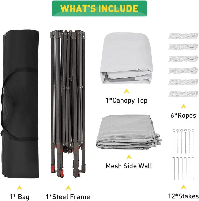 𝙋𝙤𝙧𝙩𝙖𝙗𝙡𝙚 & 𝙋𝙤𝙥-𝙪𝙥 𝘼𝙨𝙨𝙚𝙢𝙗𝙡𝙮 𝘿𝙚𝙨𝙞𝙜𝙣: Pop-up instant design is applied to this outdoor tent canopy, making it easy to set up with no hassle. Equipped with a wheeled carrying bag, the 13x13ft pop-up gazebo is easy to carry. Take it wherever you go, offering reliable shade for all your outdoor adventures