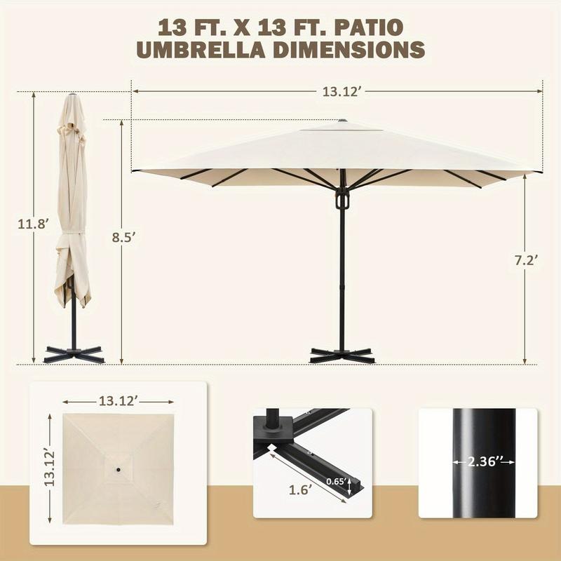 13' X 13' Rectangular Patio Umbrella, Outdoor Aluminum Umbrella with 8 Reinforced Ribs, Market Umbrella for Garden, Pool, Lawn, Deck, Backyard13' X 13' Rectangular Patio Umbrella, Outdoor Aluminum Umbrella with 8 Reinforced Ribs, Market Umbrella for Garden, Pool, Lawn, Deck, Backyard13' X 13' Rectangular Patio Umbrella, Outdoor Aluminum Umbrella with 8 Reinforced Ribs, Market Umbrella for Garden, Pool, Lawn, Deck, Backyard