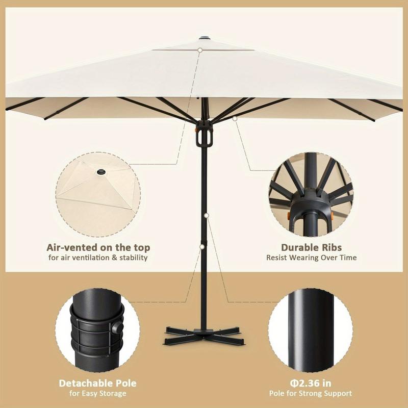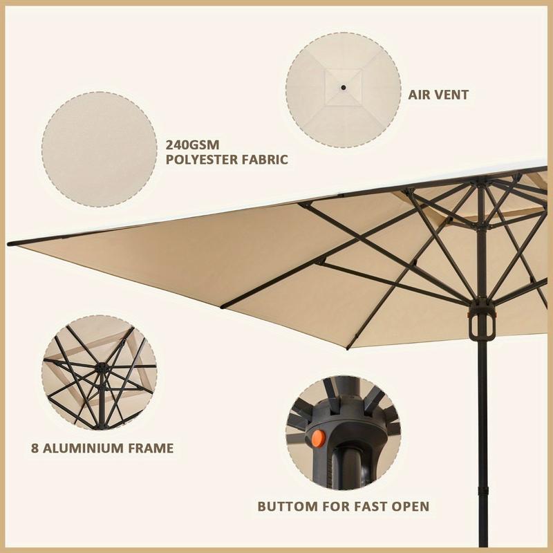 5. 13' X 13' Rectangular Patio Umbrella, Outdoor Aluminum Umbrella with 8 Reinforced Ribs, Market Umbrella for Garden, Pool, Lawn, Deck, Backyard