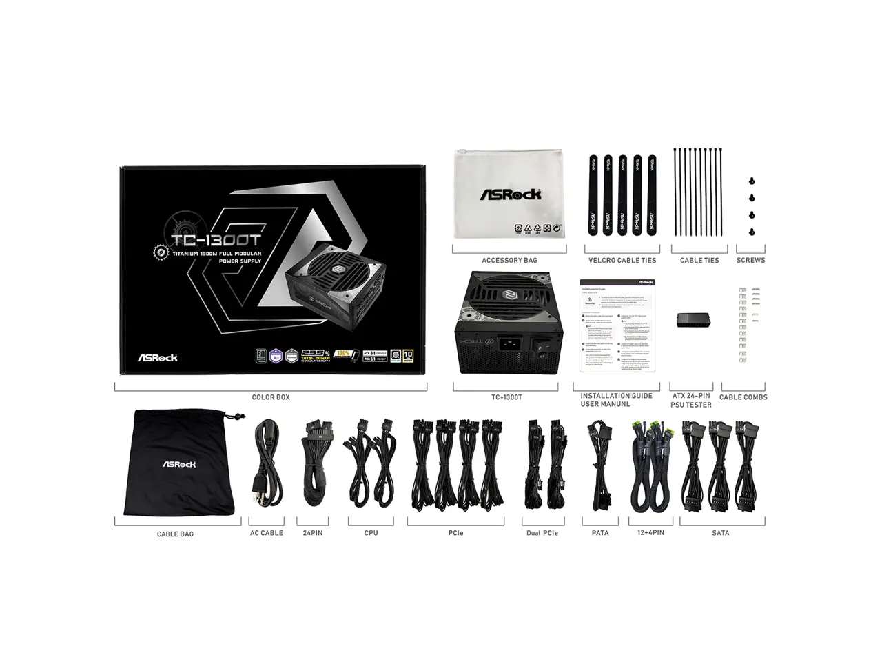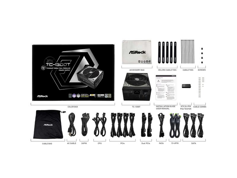 ASRock Taichi TC-1300T 1300W 80 PLUS TITANIUM & Cybenetics TITANIUM Full Modular Power Supply, ATX3.1 & PCIe5.1 Ready with Dual Color 12V-2x6 Cables(2pcs), 10 Years Warranty