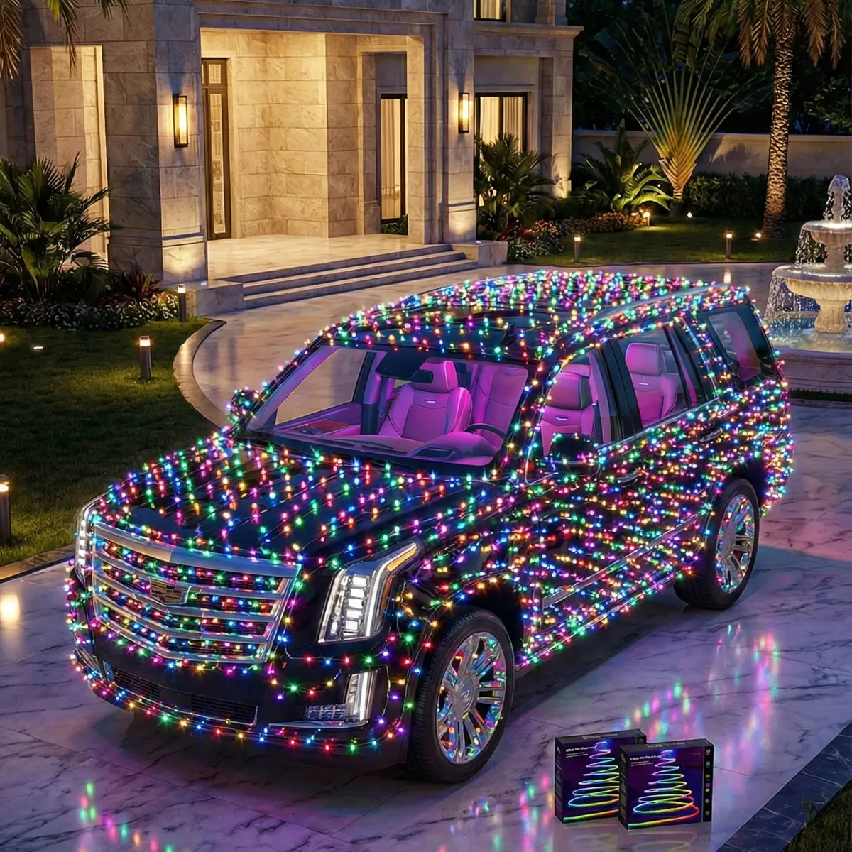 ·【Vehicle Decoration】Recommended for car decoration with 132FT string lights. Compatible with Christmas-themed car decorations; Suitable for: Sedans, Pickups, RVs