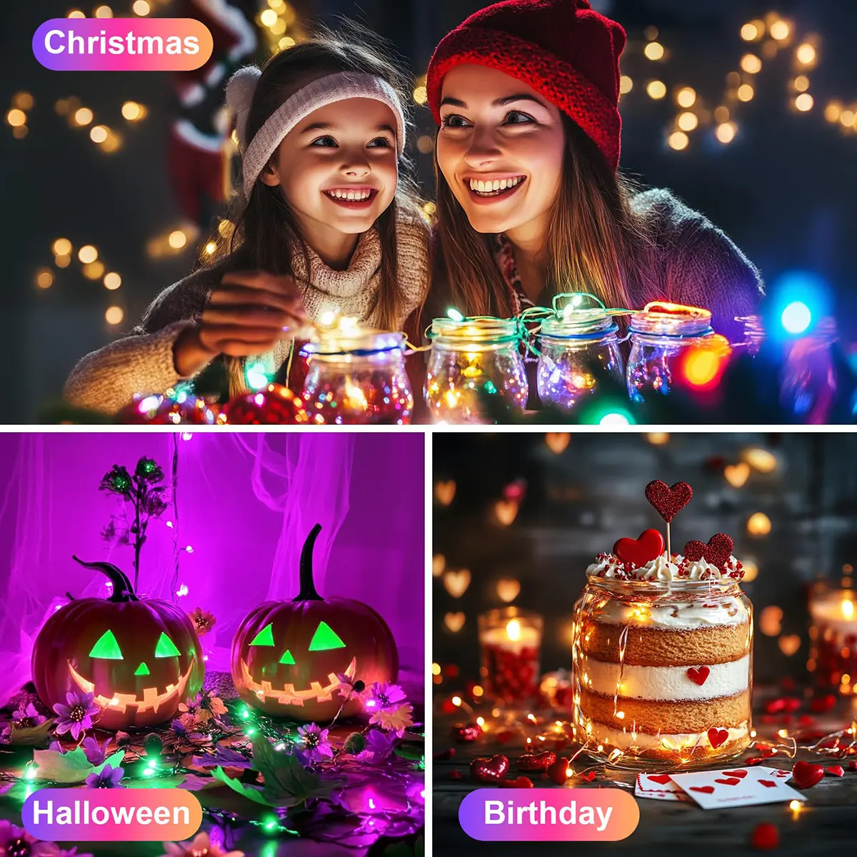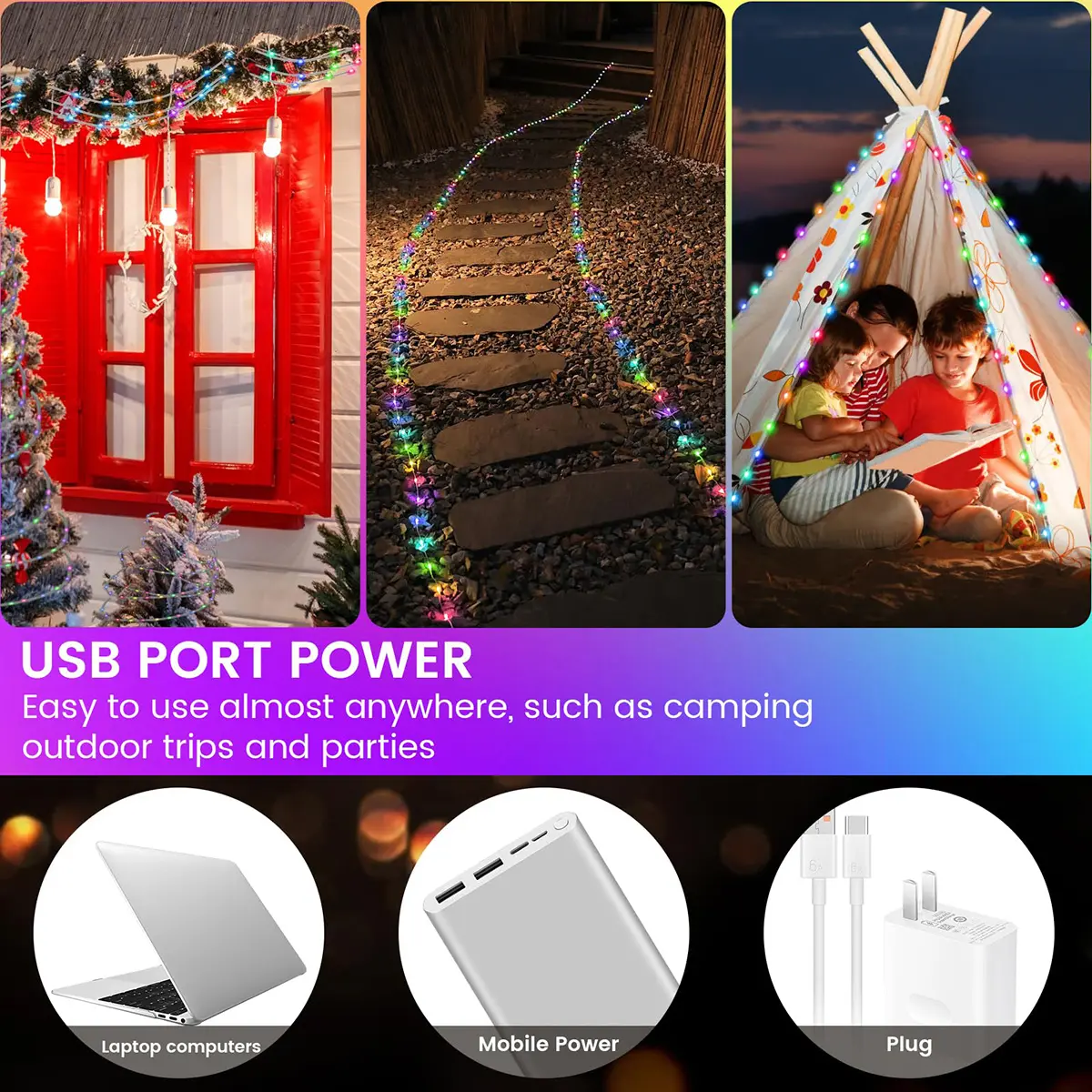 ·【Versatile Usage】Generously sized strip lights perfectly decorate bedrooms, kitchens, ceilings, and living rooms. Ideal for festive occasions like Christmas, Halloween, birthdays, weddings, and outdoor camping.
