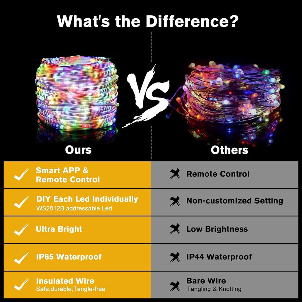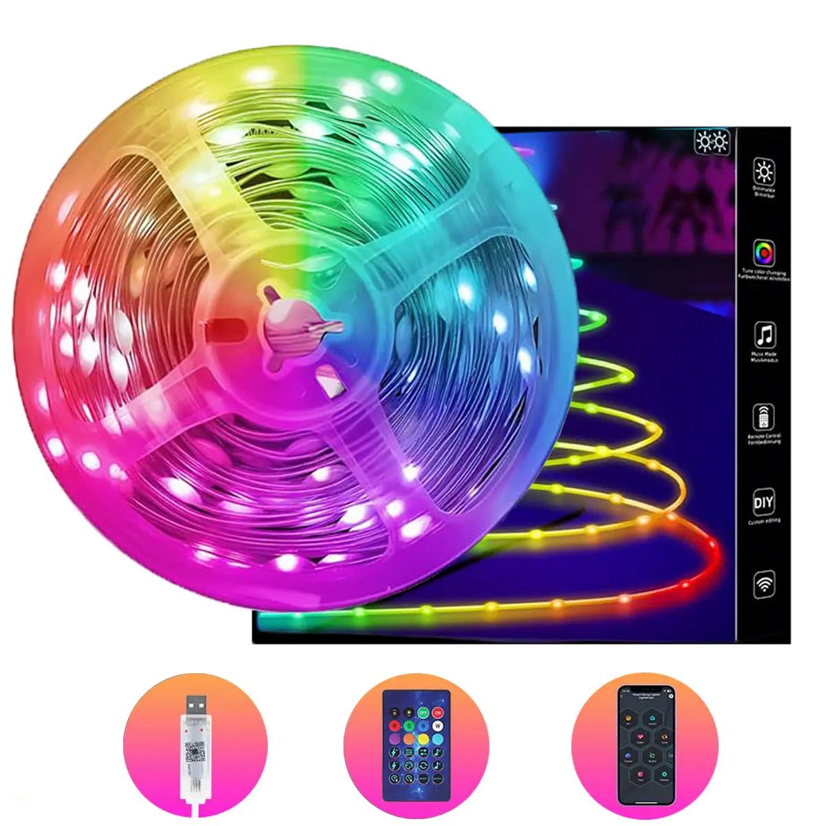 ·【APP & IR Remote】Control LEDs via stable Bluetooth connection. Switch between 16 million colors, adjust brightness, and customize flashing, jumping, gradient effects with adjustable speeds.