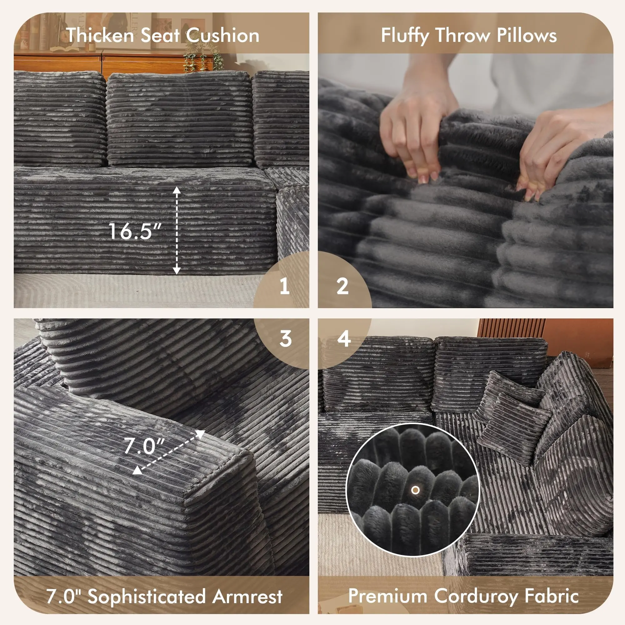 ·Plush Corduroy Uphholstery: Enjoy a soft and luxurious feel, perfect for lounging.