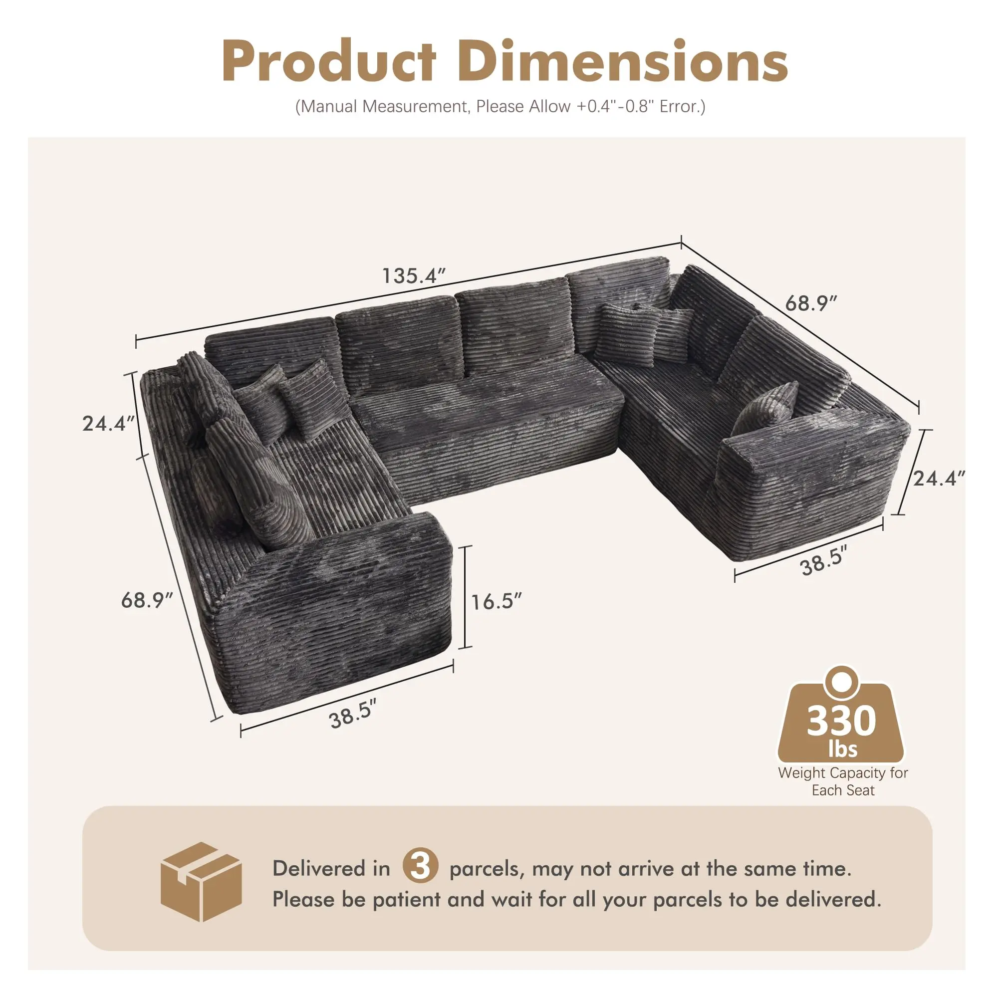 ·Modular Floor Boneless Design: Easily adjust the size of the sofa to fit your space and needs.