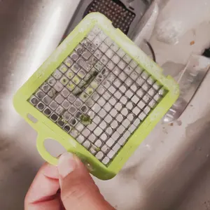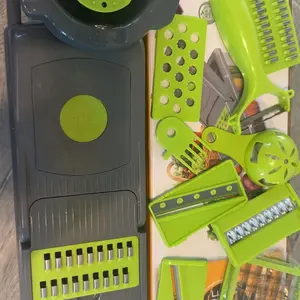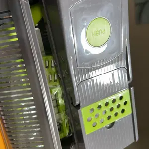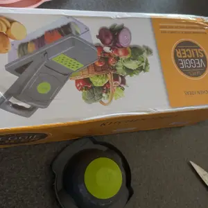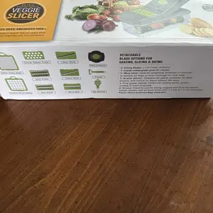 This slicer is cheaply made and hard to use. You have to cut veggies small, push with full force, and hold the base down because it lifts. Plastic feels flimsy, warped after 1 dishwasher wash. Definitely not worth it — 0/10.
