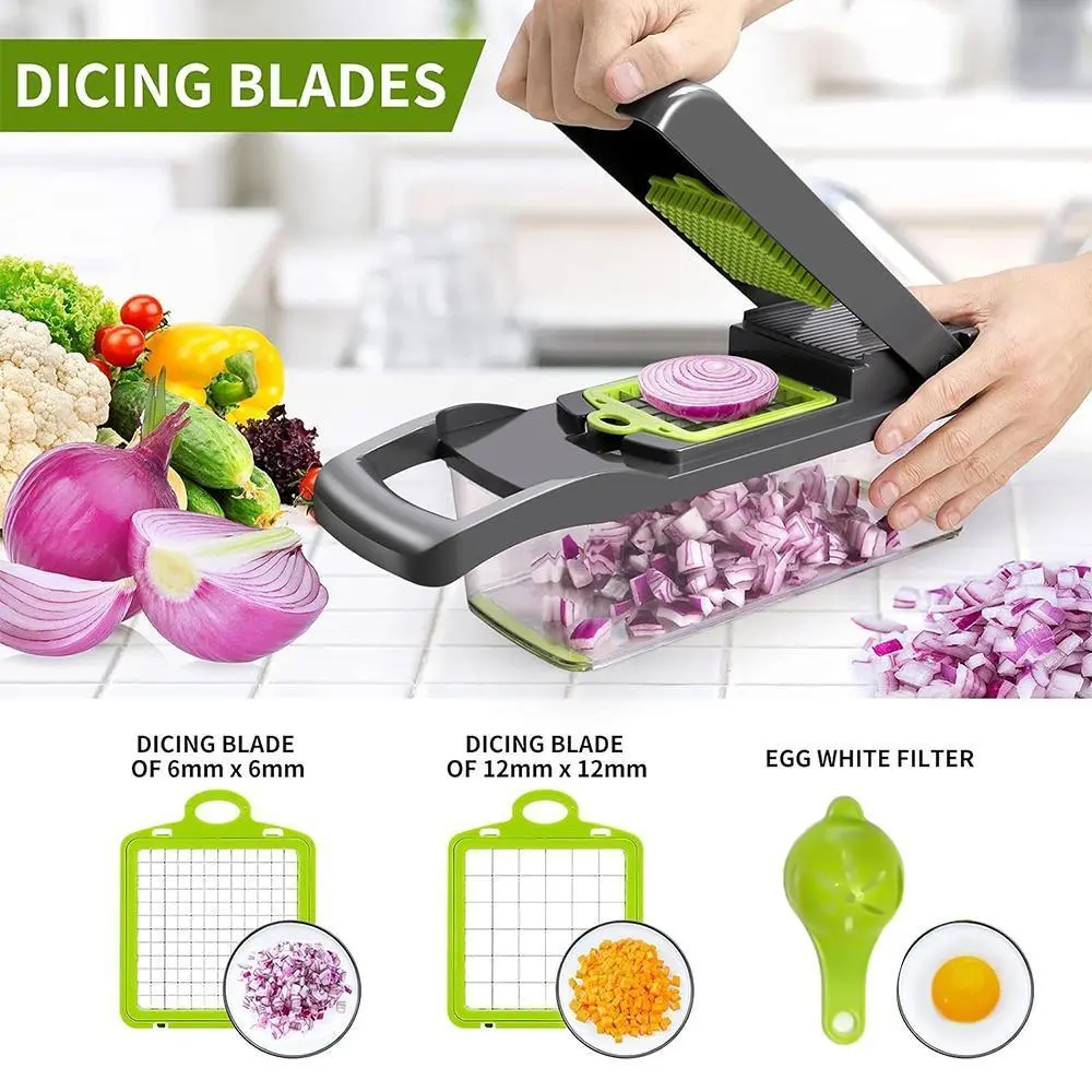 [Save Time and Labor] Use our food chopper to slice and dice safely and easily in half the time, greatly shortening our cooking time, vegetable slicer will be your best helper in the kitchen