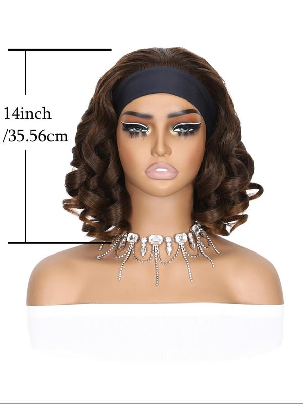 5. 14 Inch Fashionable Plain Color Curly Wigs for Women, Gorgeous Fluffy Wigs with Band, Synthetic Full Machine Wigs for Party, Daily Use, Wavy Wigs