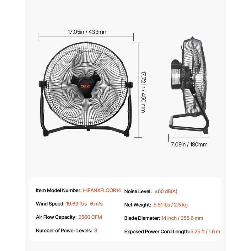 ·Built-to-Last Structure: This heavy-duty industrial fan features a metal grill with a black powder rust-proof coating, ensuring durability. The fan’s 14-inch wide aluminum blades are strong and won’t easily break.