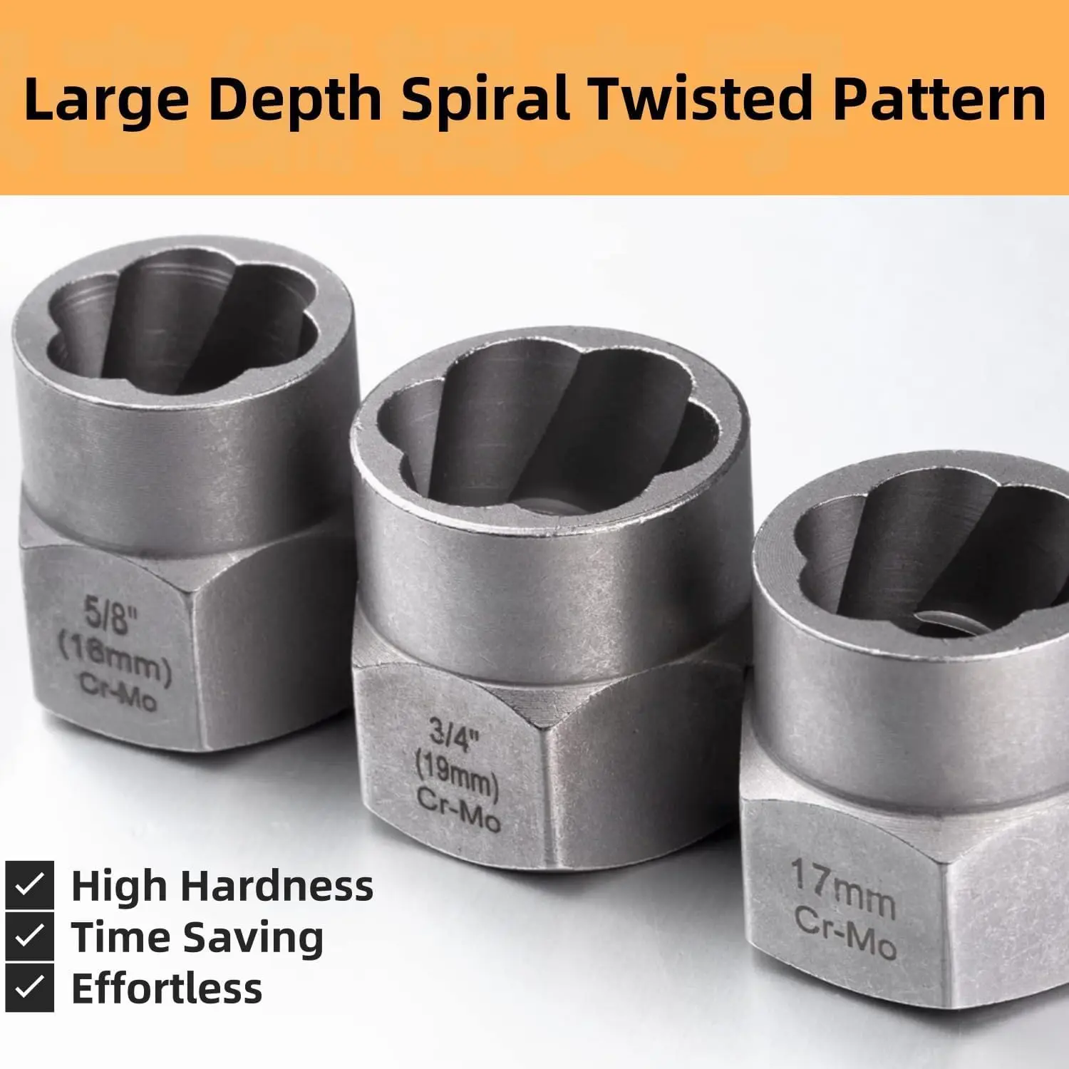 ·【Unique Design】The internal thread with reverse spiral flutes design to bite down to provide maximum gripping power, the more you turn, the tighter the socket grips.