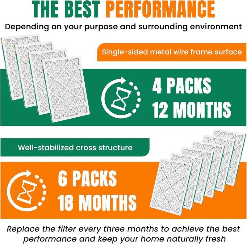 ·【Optimized for Low Airflow Resistance】Scientifically engineered structure ensures smooth airflow, preventing energy waste and potential spikes in electricity bills caused by high-restriction filters. Helps extend the lifespan of your AC/furnace equipment. Balances performance and energy efficiency for a more reliable HVAC system