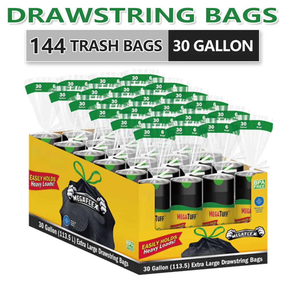 144 Bags 30 Gallon 24 Roll Non Tear Disposable Large Drawstring Black Trash Bags For Large Kitchen Trash Can, Ultra Strong 144 Count 113.5L Multipurpose Cleaning Supplies For Industrial, Garden, Home, Commercial - Durable, Leak-Proof, And Easy To Use144 Bags 30 Gallon 24 Roll Non Tear Disposable Large Drawstring Black Trash Bags For Large Kitchen Trash Can, Ultra Strong 144 Count 113.5L Multipurpose Cleaning Supplies For Industrial, Garden, Home, Commercial - Durable, Leak-Proof, And Easy To Use144 Bags 30 Gallon 24 Roll Non Tear Disposable Large Drawstring Black Trash Bags For Large Kitchen Trash Can, Ultra Strong 144 Count 113.5L Multipurpose Cleaning Supplies For Industrial, Garden, Home, Commercial - Durable, Leak-Proof, And Easy To Use144 Bags 30 Gallon 24 Roll Non Tear Disposable Large Drawstring Black Trash Bags For Large Kitchen Trash Can, Ultra Strong 144 Count 113.5L Multipurpose Cleaning Supplies For Industrial, Garden, Home, Commercial - Durable, Leak-Proof, And Easy To Use