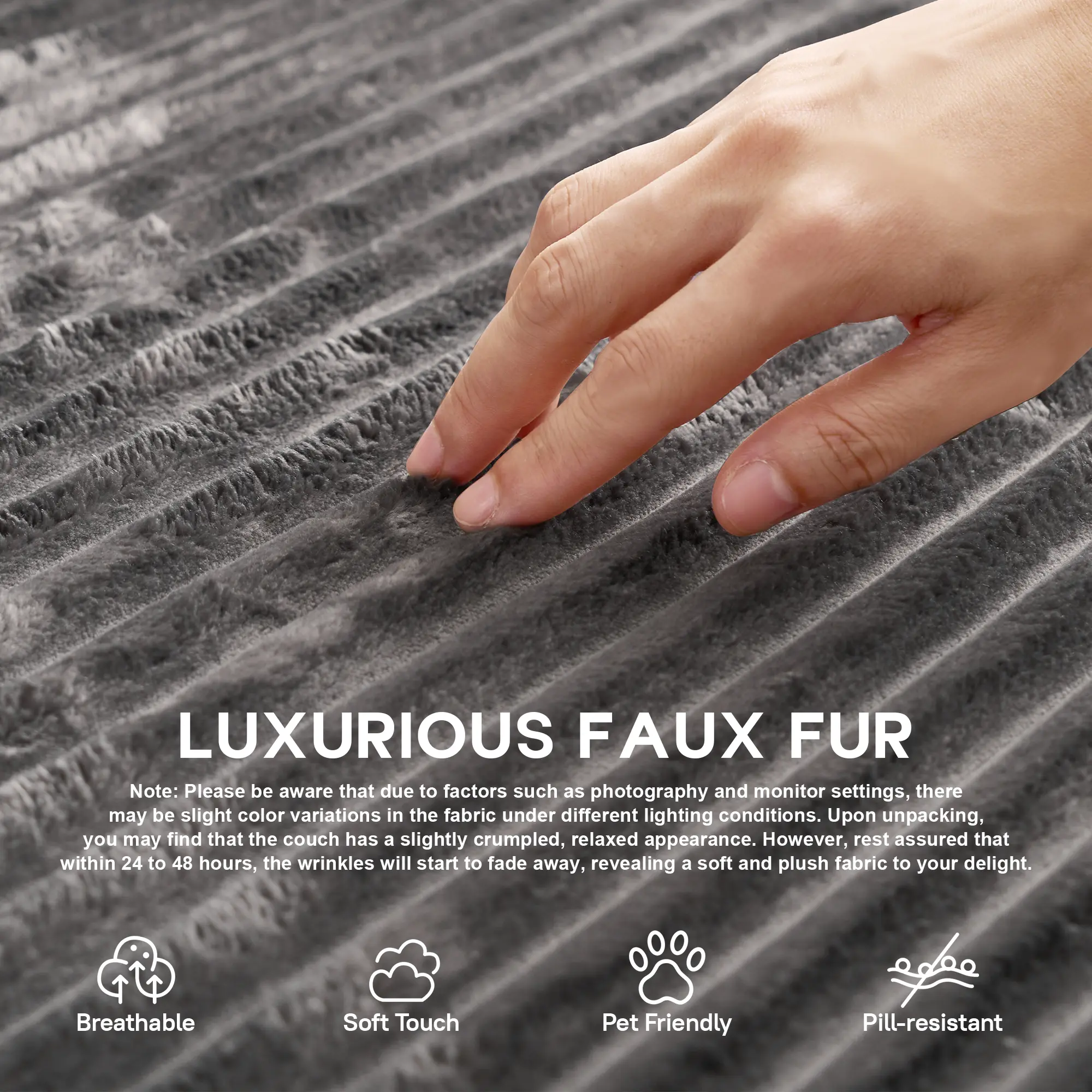Exactly as described!!! Soft, great color, and very sturdy!! I love my new cloud couch!! And so do my Puppies!!