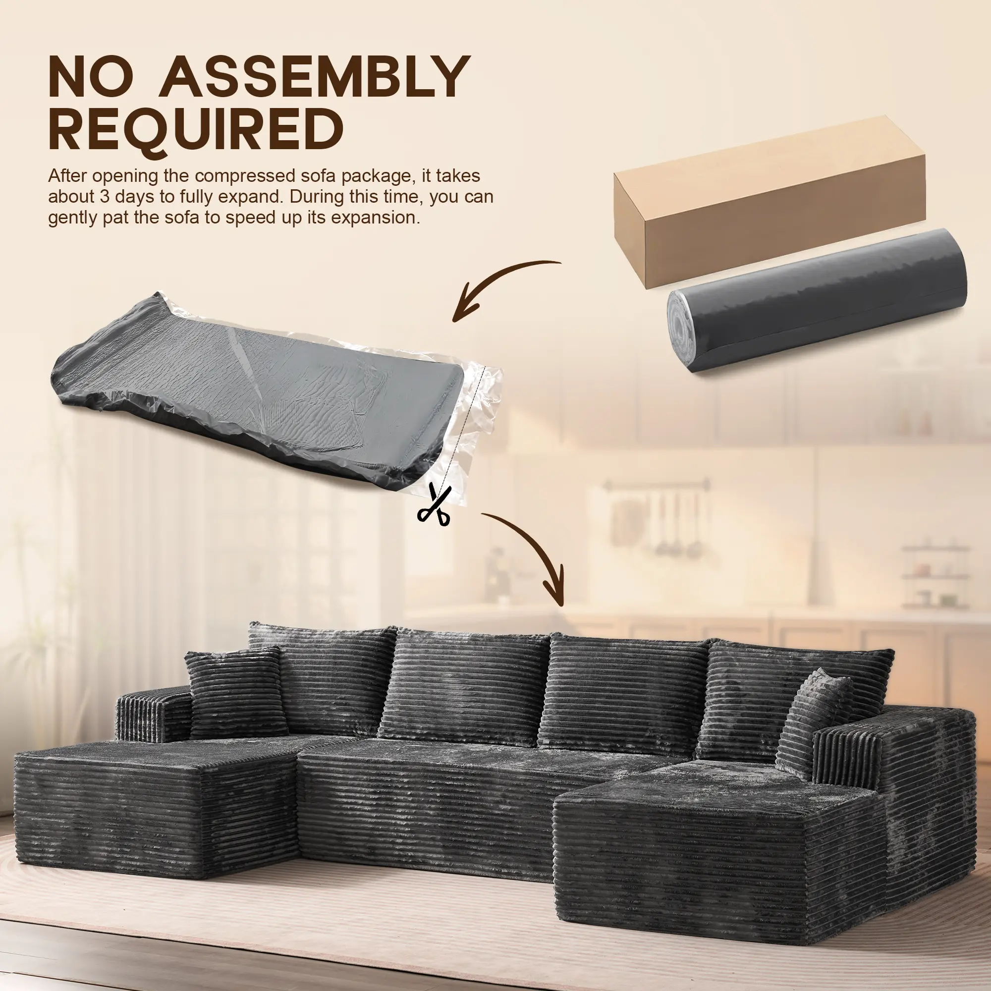 I received this almost a week ago could not unbox because I still had old furniture in house but I finally got a chance to open yesterday hoping and praying it would be worth the money I spent and I must say yes it was it was worth every penny I love it my grandkids love it. I didn’t realize how long the U Shaped couch was so now I’m going to have to change rooms but it’s worth it. Here’s a photo of the furniture 1-2 hours unboxed. Tried my best to keep my grandkids off it.
