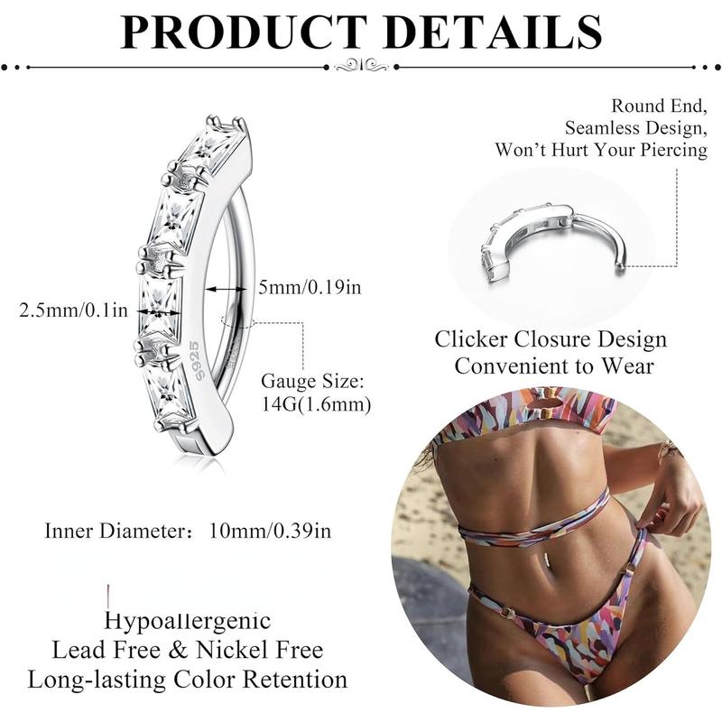 ·BELLY BUTTON RINGS -- One order contains 1 styles of bellybutton rings, Style:Square Zircon. The fashionable belly button rings are designed with a practical hinged clasp for easy removal of the one-count clasp. Give you a distinctive and unique look, suitable for matching with any outfit.