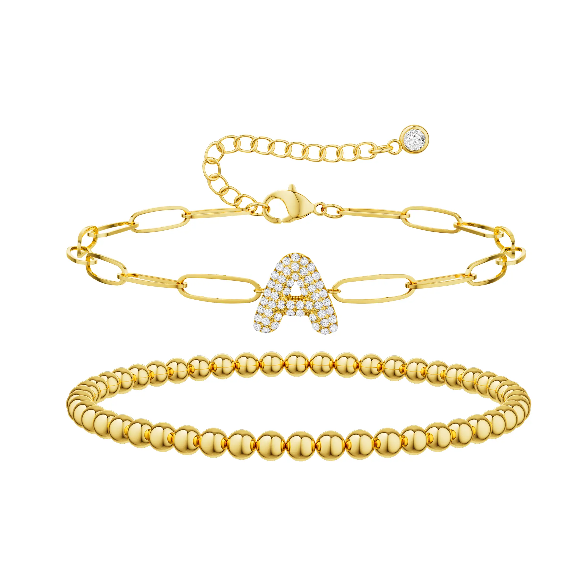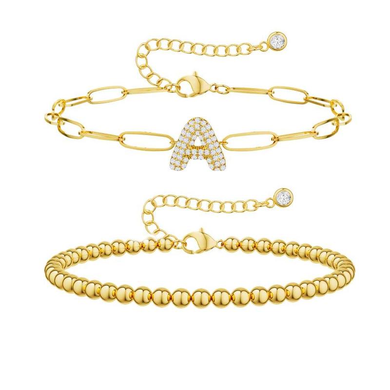 ✨ Layered Initial Design: Our bracelets boast a double-layered aesthetic, offering a unique and chic appearance. Crafted from Cuban zirconia letters on paperclip chains, they're perfect for any event. The adjustable size ensures a comfortable fit for most women.