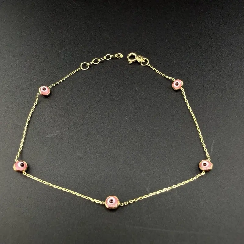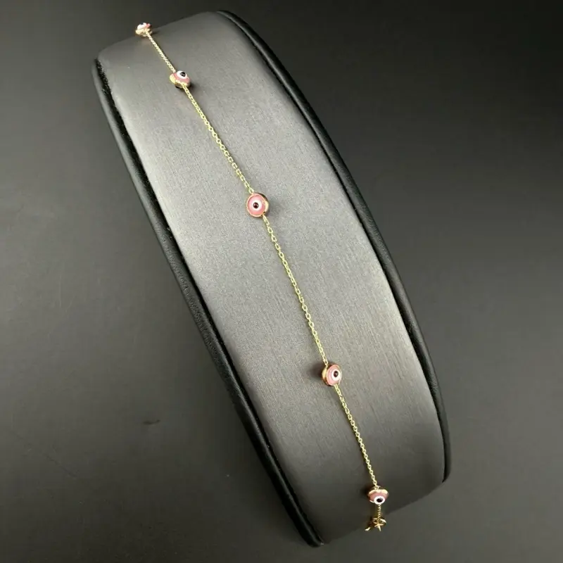 🌟 14k Gold Pink Evil Eye Bracelet 🌟