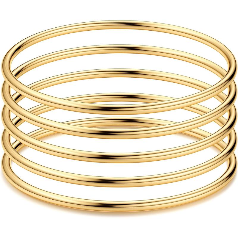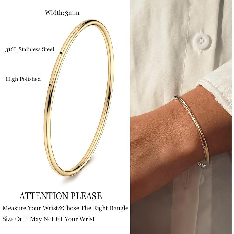 ·【Bangle Bracelet Set】5pcs bangle bracelets in one order,Simple design reveals the eternity of love, 3mm thin Round bangle Bracelet can be worn individually or stacked,The perfect look to add a unique charm to your outfit.