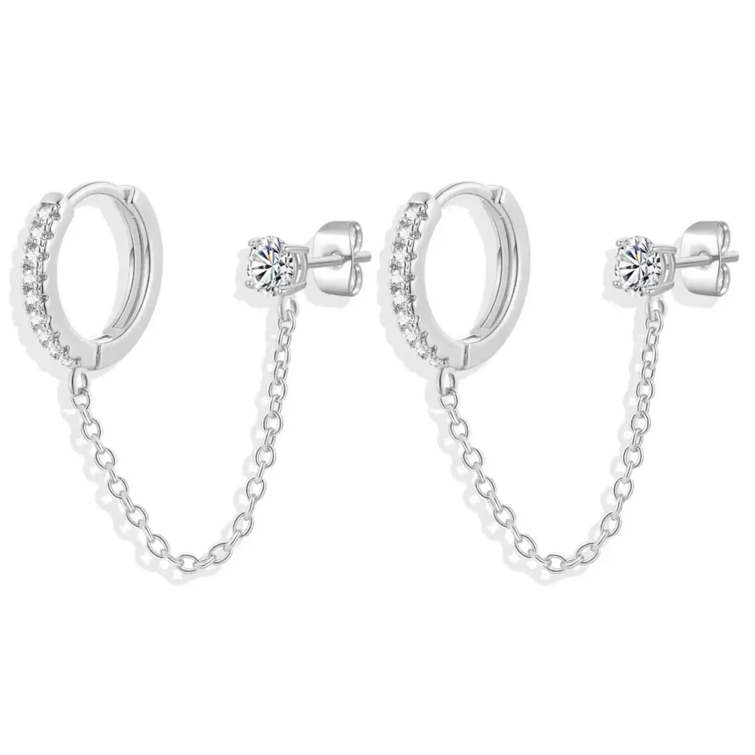 ·Bold Yet Elegant: The sleek chain detail brings a contemporary twist to the timeless huggie hoop and sparkling CZ stud.