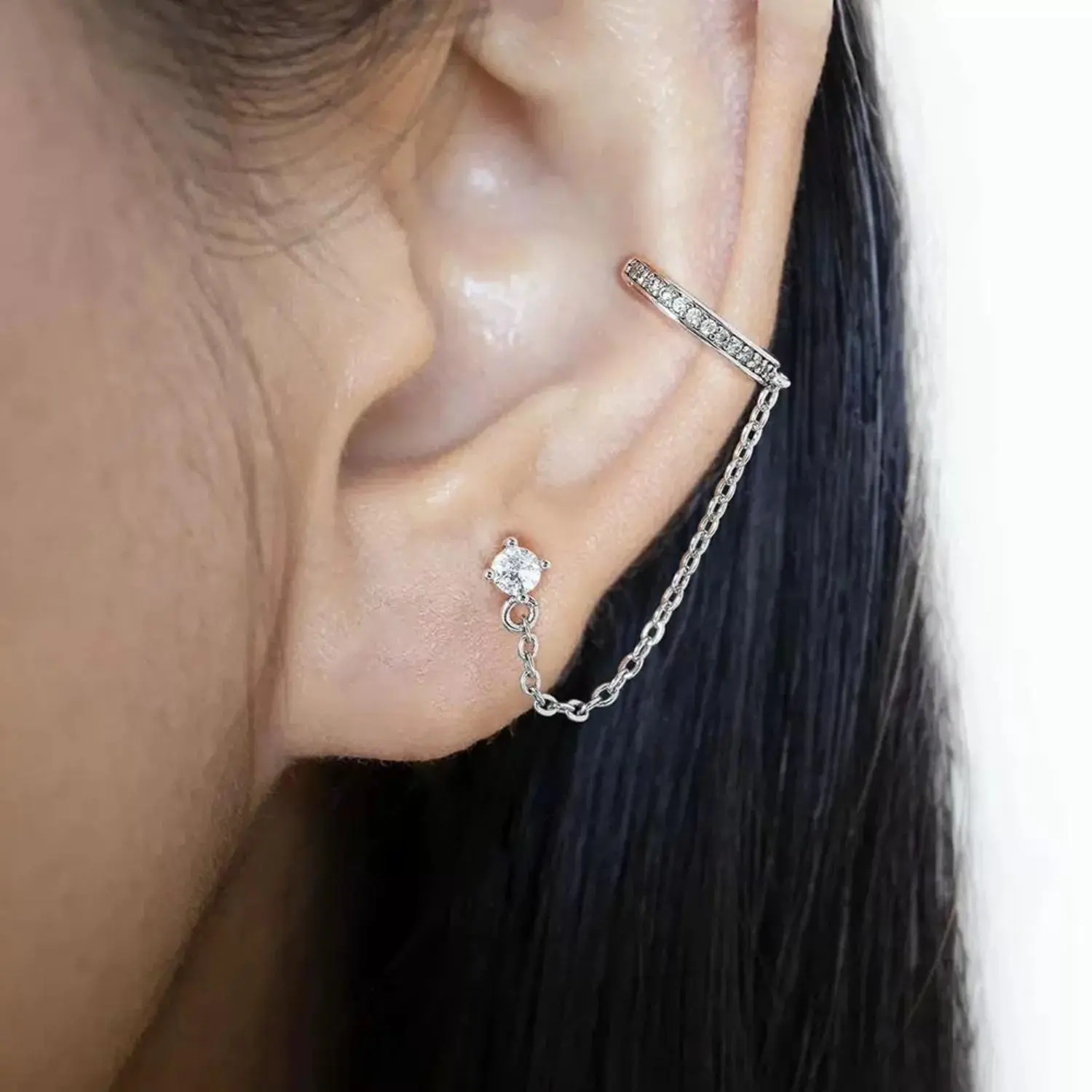 This chain-adorned huggie hoop with CZ stud is the ultimate blend of audacity and elegance. Make it yours today and express your unique style with confidence.