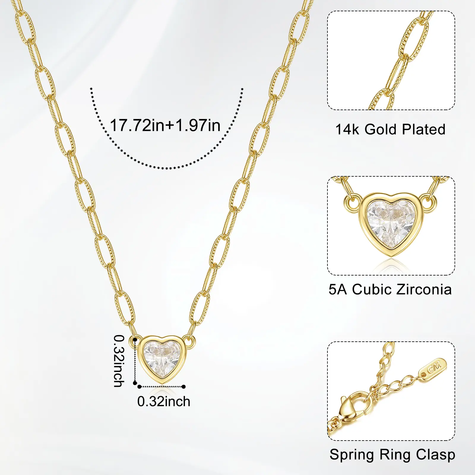 Heart pendant width: 0.3” (0.8cm) – subtle yet sparkling