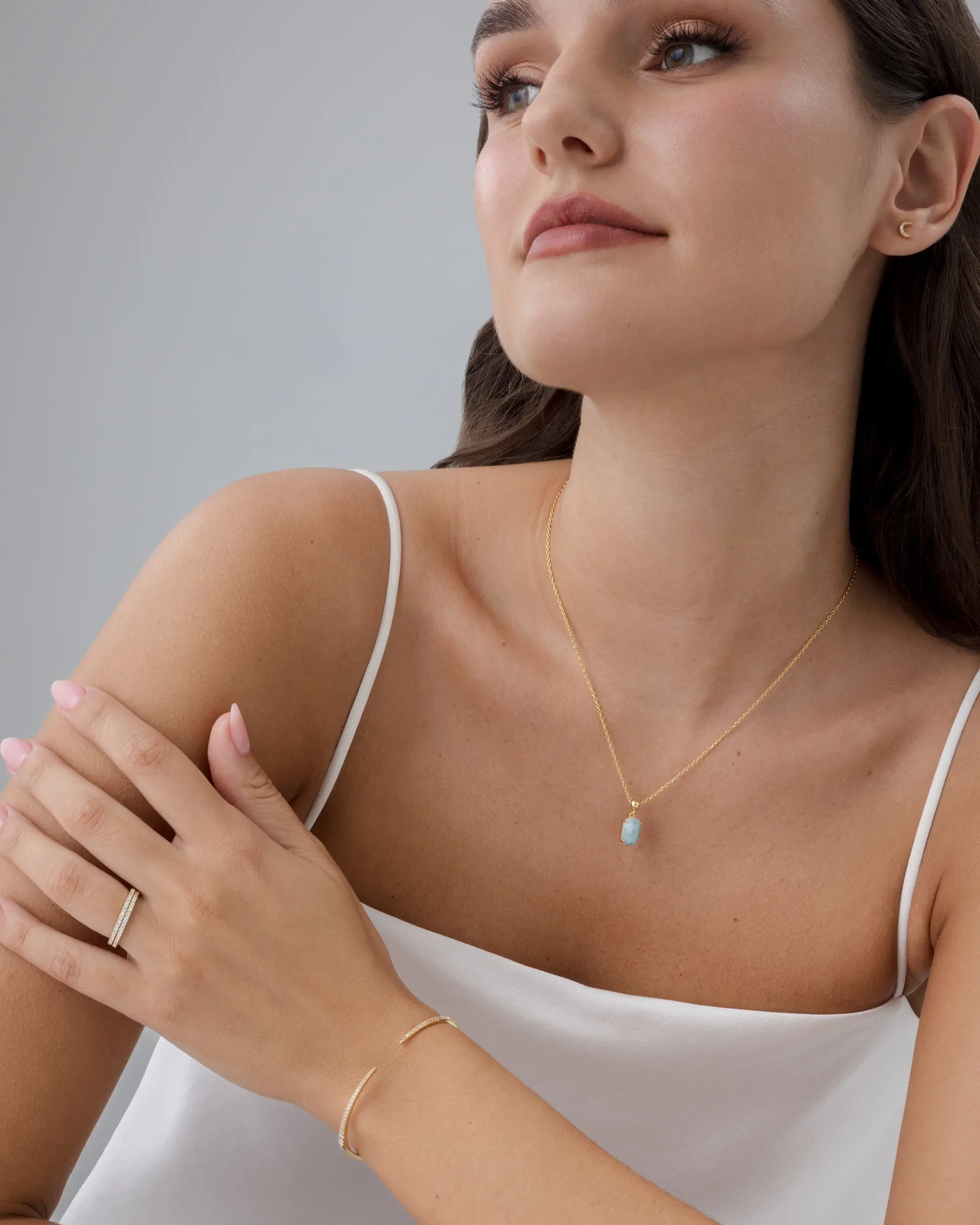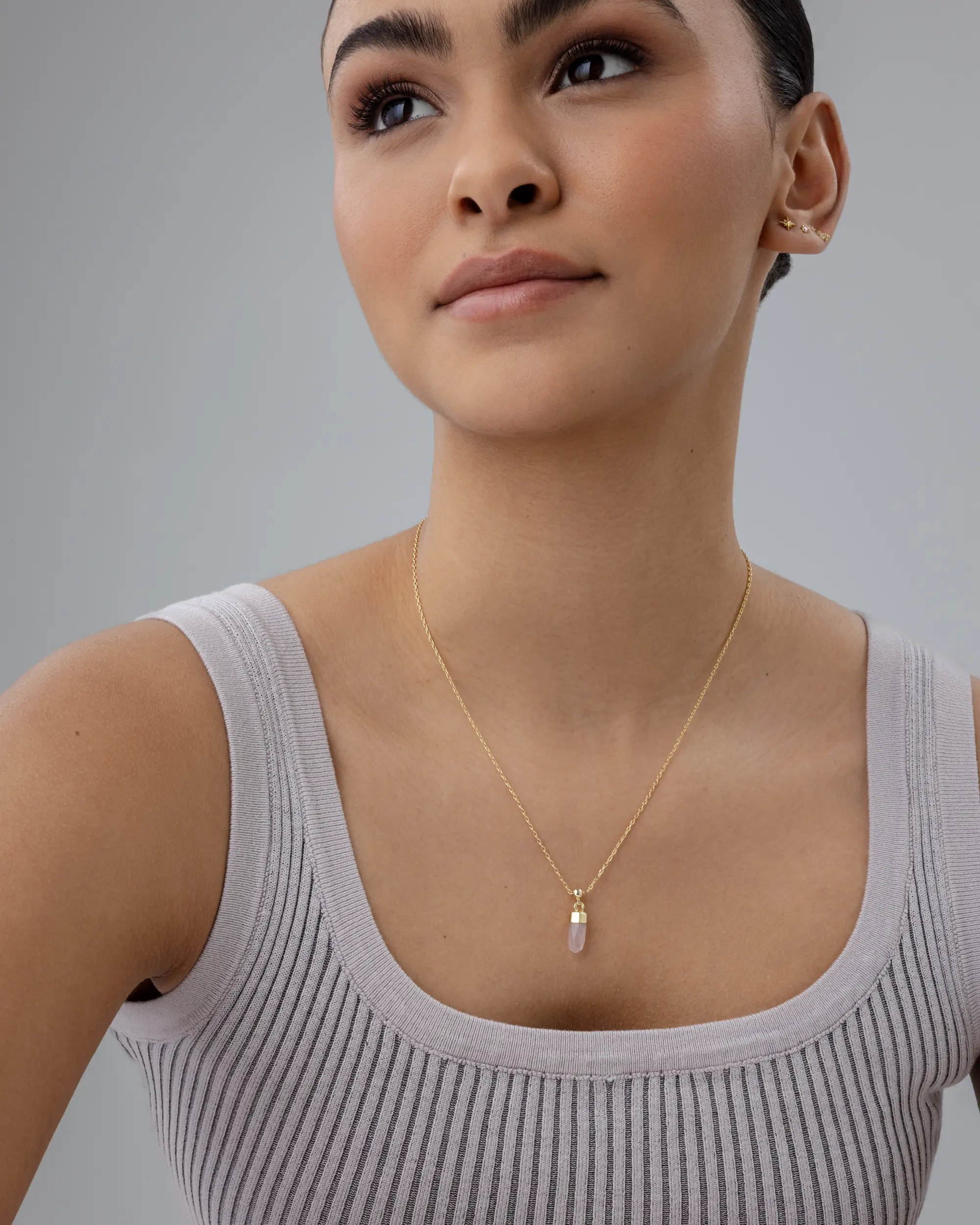 ·Dainty Crystal Pendant: A sleek gemstone that catches the light beautifully.
