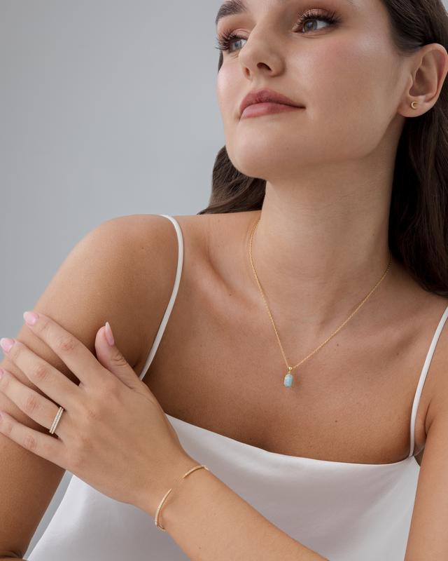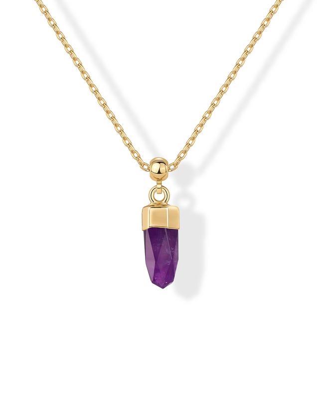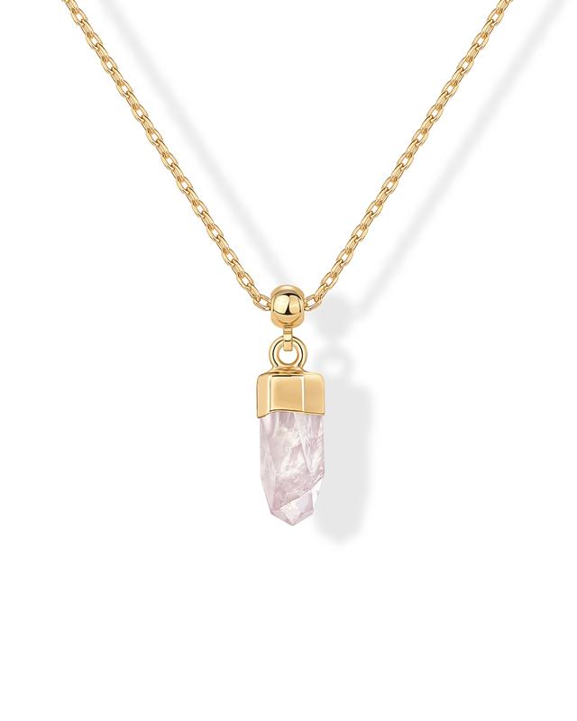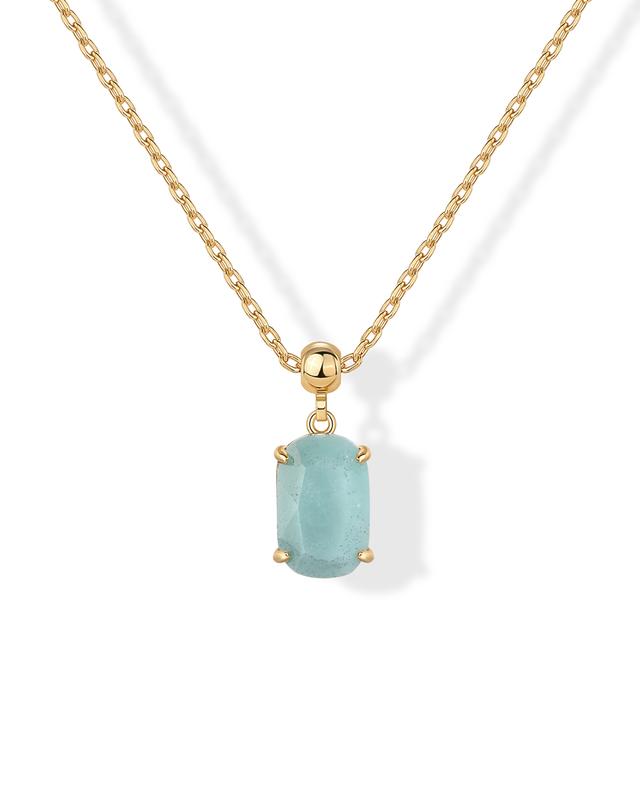 ·Crystal - This stone pendant necklace features a dainty 13MM x 6MM gemstone charm pendant that is removable, plated in 14K gold and paired with an adjustable sliding ball chain—offering a custom fit and everyday sophistication. Available gemstones are amethyst, aquamarine, aventurine, carnelian, rose quartz, sodalite, topaz, and turquoise.