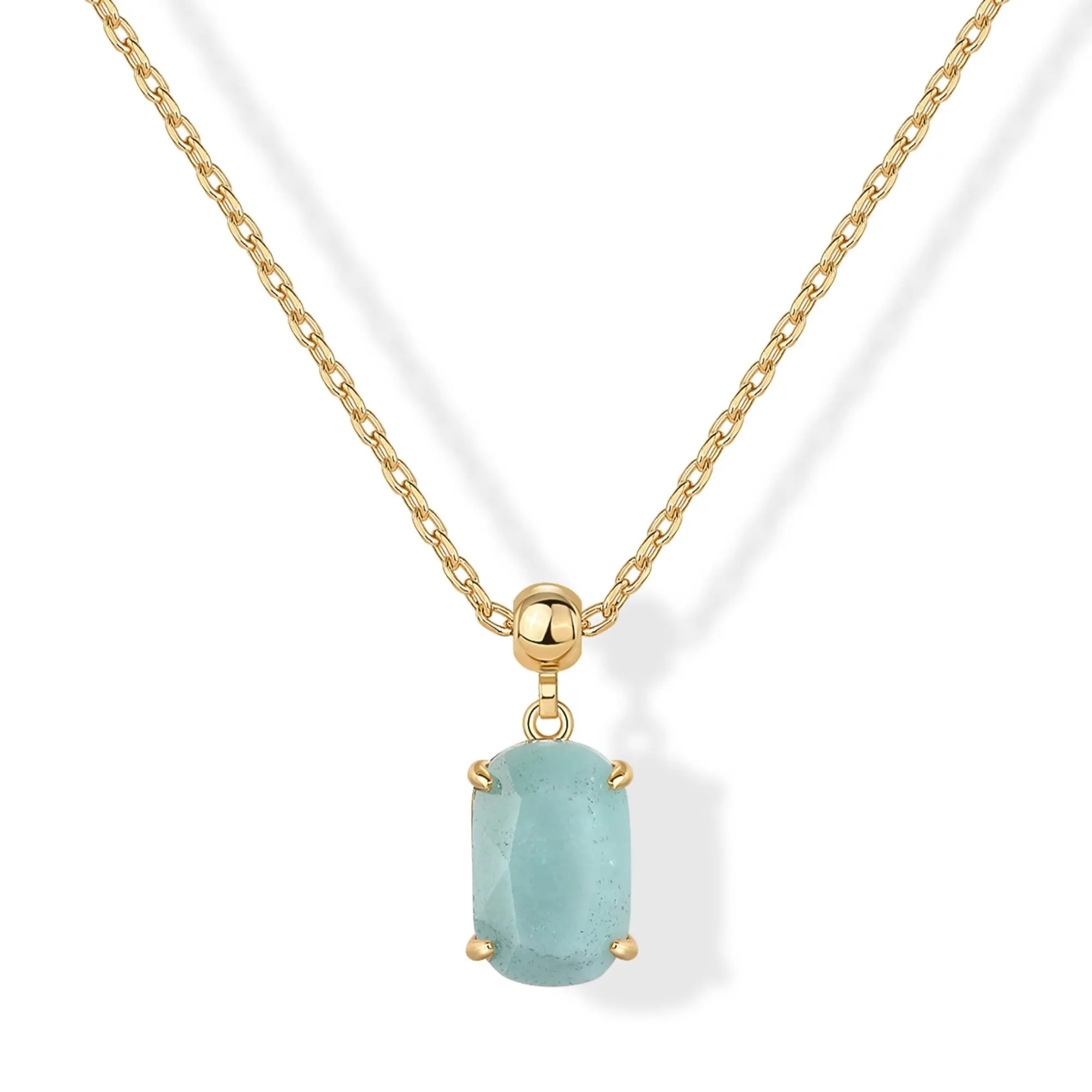 ·Faceted - This necklace features a stunning 11MM x 7.5MM gemstone pendant on an adjustable 18" sliding ball chain, offering a personalized fit and a delicate, eye-catching design for everyday elegance. Available in amazonite and mother of pearl gemstones.