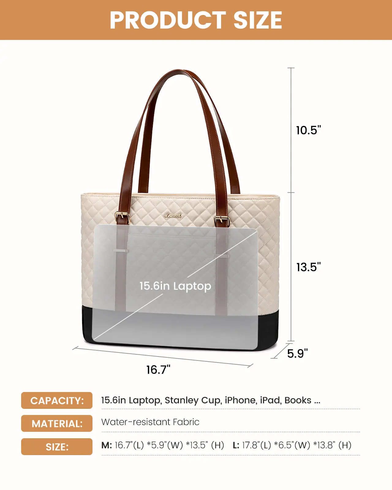 ·【Perfect Gift for Any Occasion】: With its elegant design and practical features, this laptop tote is an ideal gift for women on the go. Perfect for work, college, travel, or as a thoughtful gift for birthdays and holidays.Dimensions: 16.7'' (L) x 5.9''(W) x 13.5''(H); strap drop from top to zipper: 10.5''.