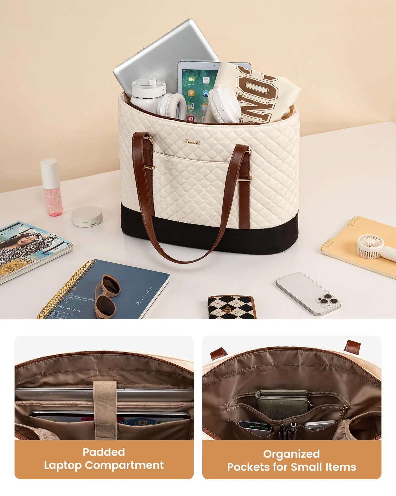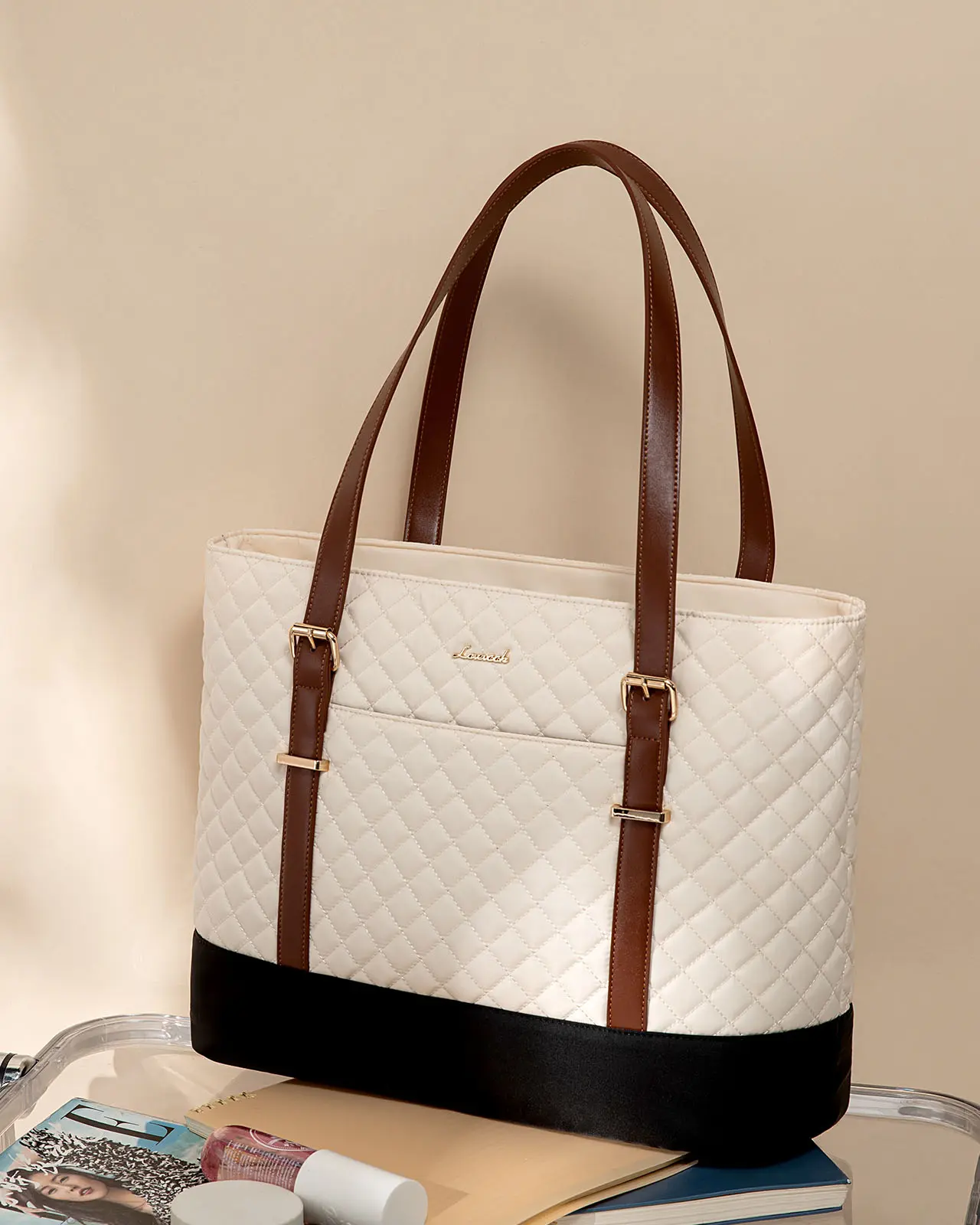·【Elegant Laptop Tote Bag】: Enhance your everyday style with this work tote bag, showcasing a beautiful diamond-quilted pattern. Designed for both elegance and sophistication, it's ideal for professional and casual settings alike.