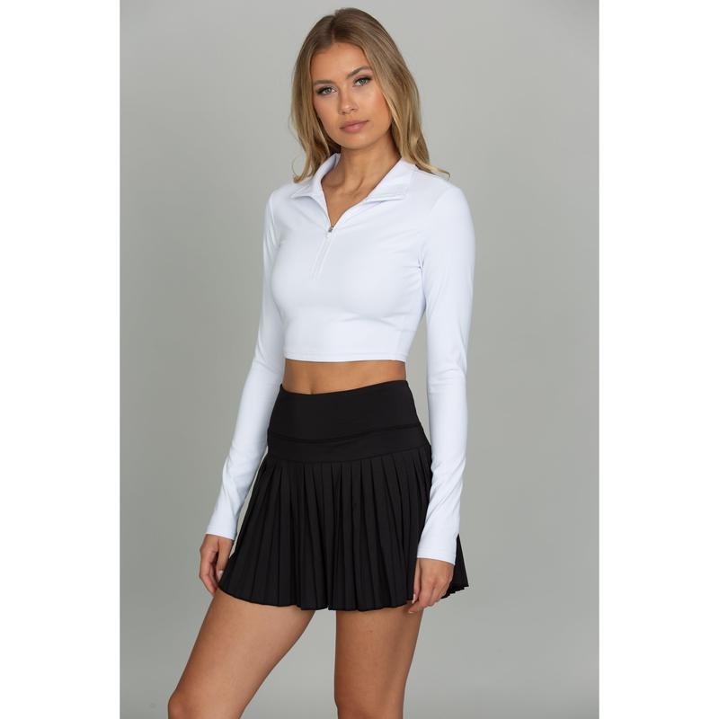 Love the cut of the skirt so flattering especially one w/ long legs. Pleats hold shape and have great movement! Super cute skirt different from the rest out there.