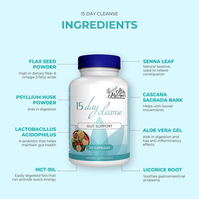 The 15 Day Cleanse is formulated to promote gut health and may relieve discomfort, leaving you feeling lighter and energized from within.