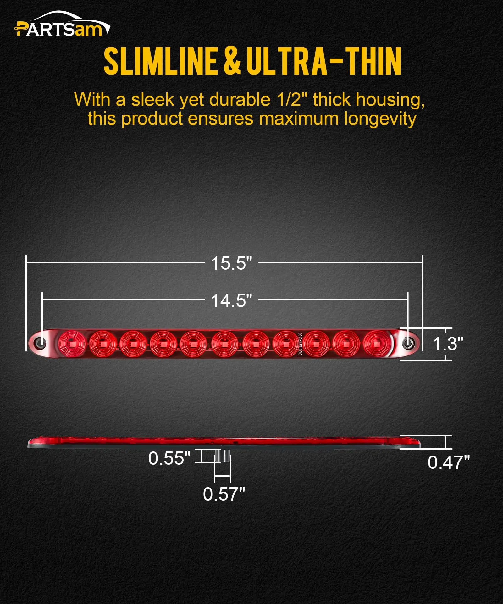 [DOT Compliant, Waterproof] These 15-inch LED tail light bars are DOT-compliant, meeting safety standards. They are sonic welded to ensure water tightness with an IP67 rating. Being strip bars of lights, they are not model-specific and can be used on any 12V DC vehicle. They are suitable for various applications, including trucks, semi-trailers, cargo trailers, boat trailers, travel trailers, horse trailers, RVs, campers, work vehicles, etc.